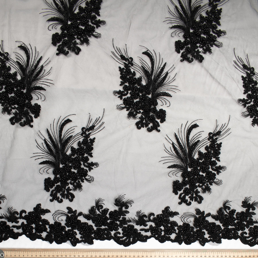 Corded Pearl/Beaded Embroidery Chantilly Lace Black