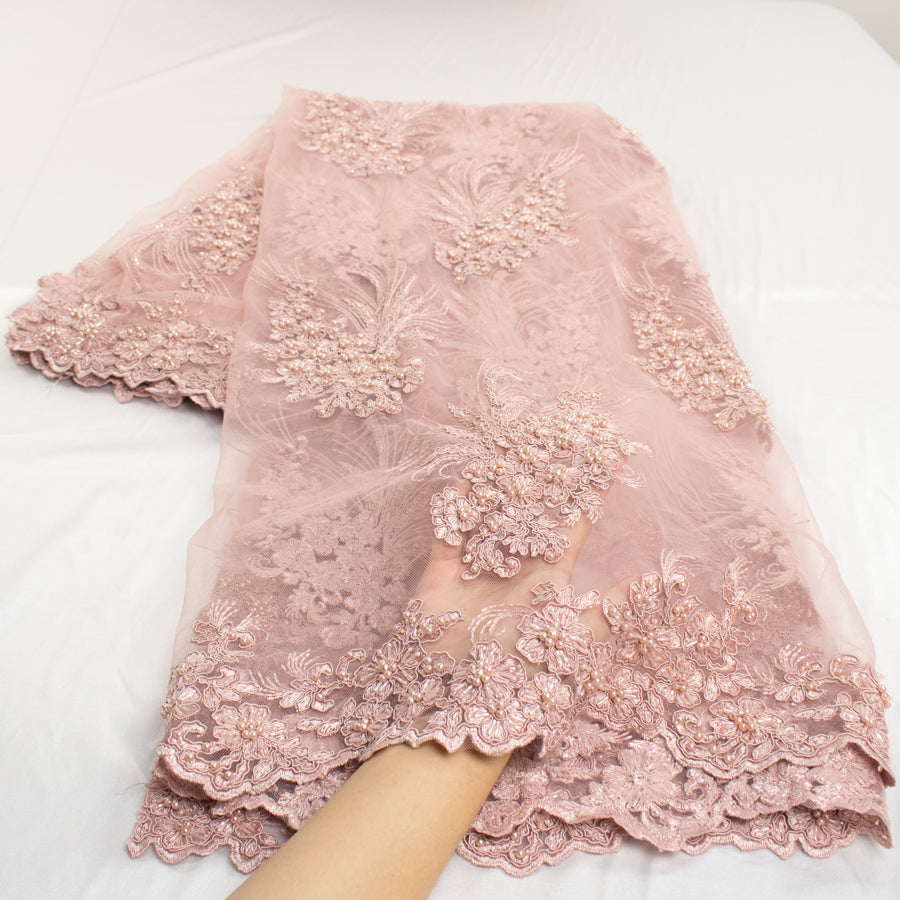 Corded Pearl/Beaded Embroidery Chantilly Lace Dusty Pink