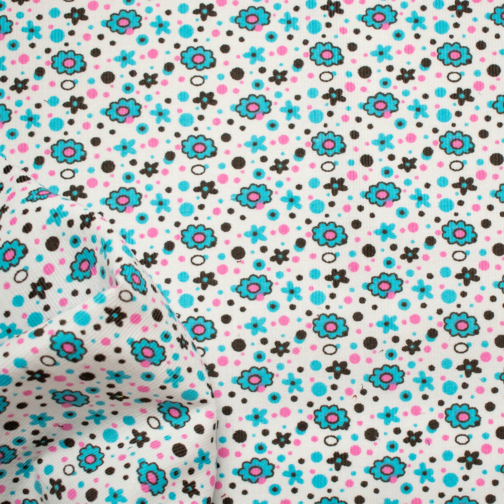Cotton Corduroy Prints Design 21 Blue Florals on White