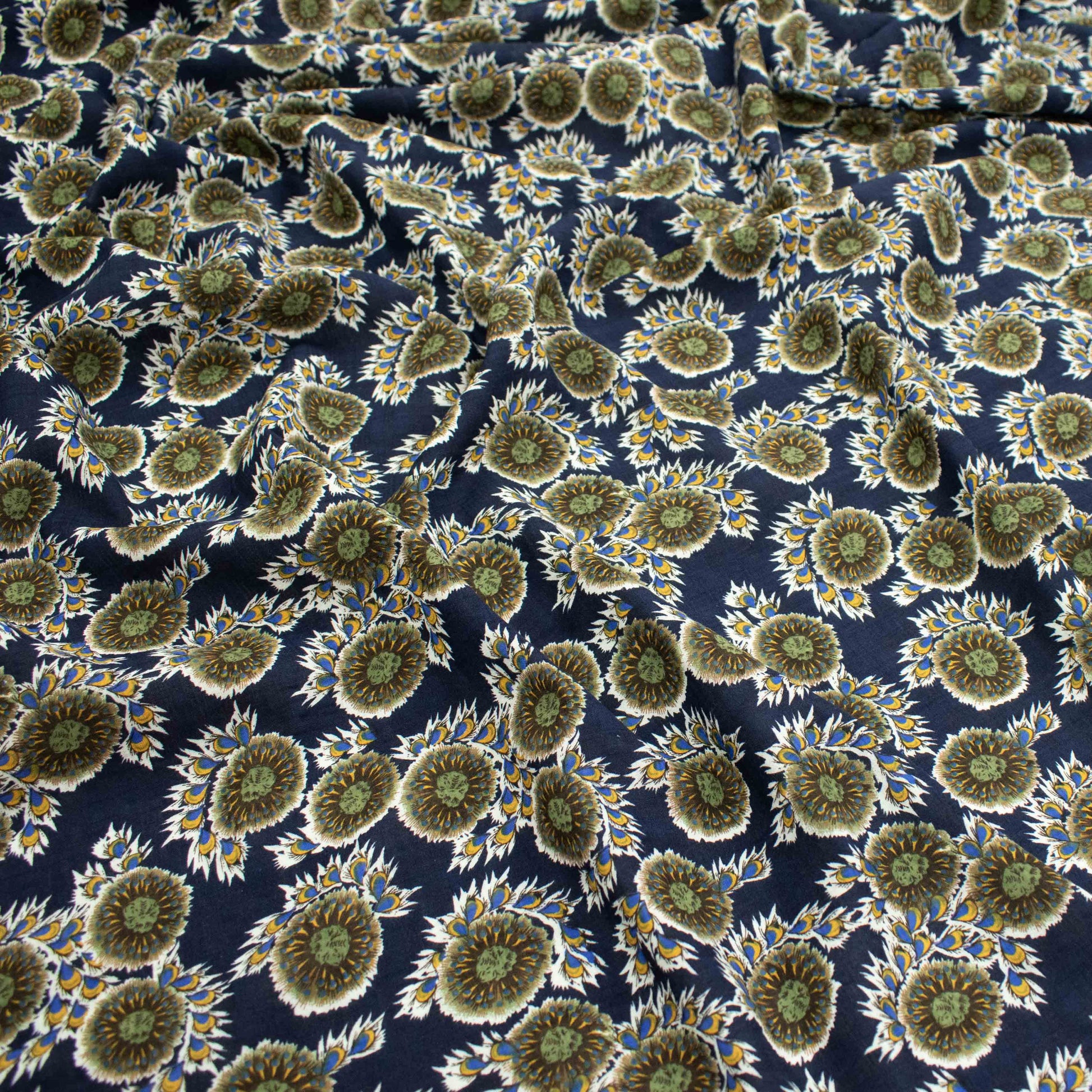 Crinkle Cotton Prints Design-11 Green Floral on Navy