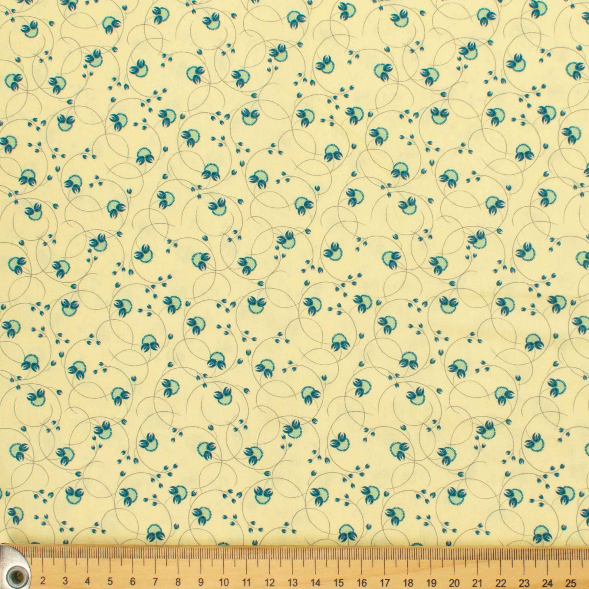 Country Side Collection #21 Blue Floral Vines on Pale Yellow Cotton Prints