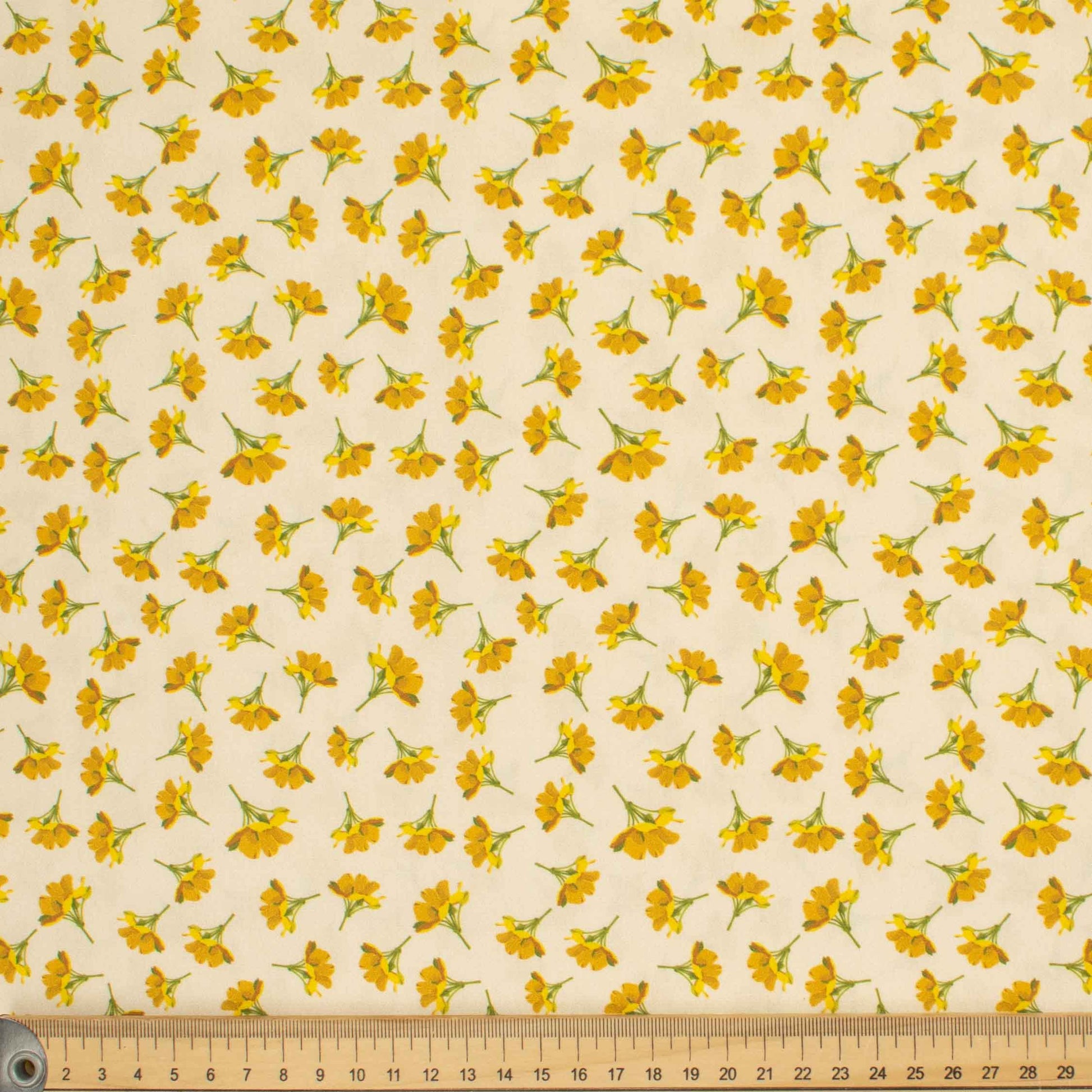 Country Side Collection #05 Yellow Floral on Cream Cotton Prints