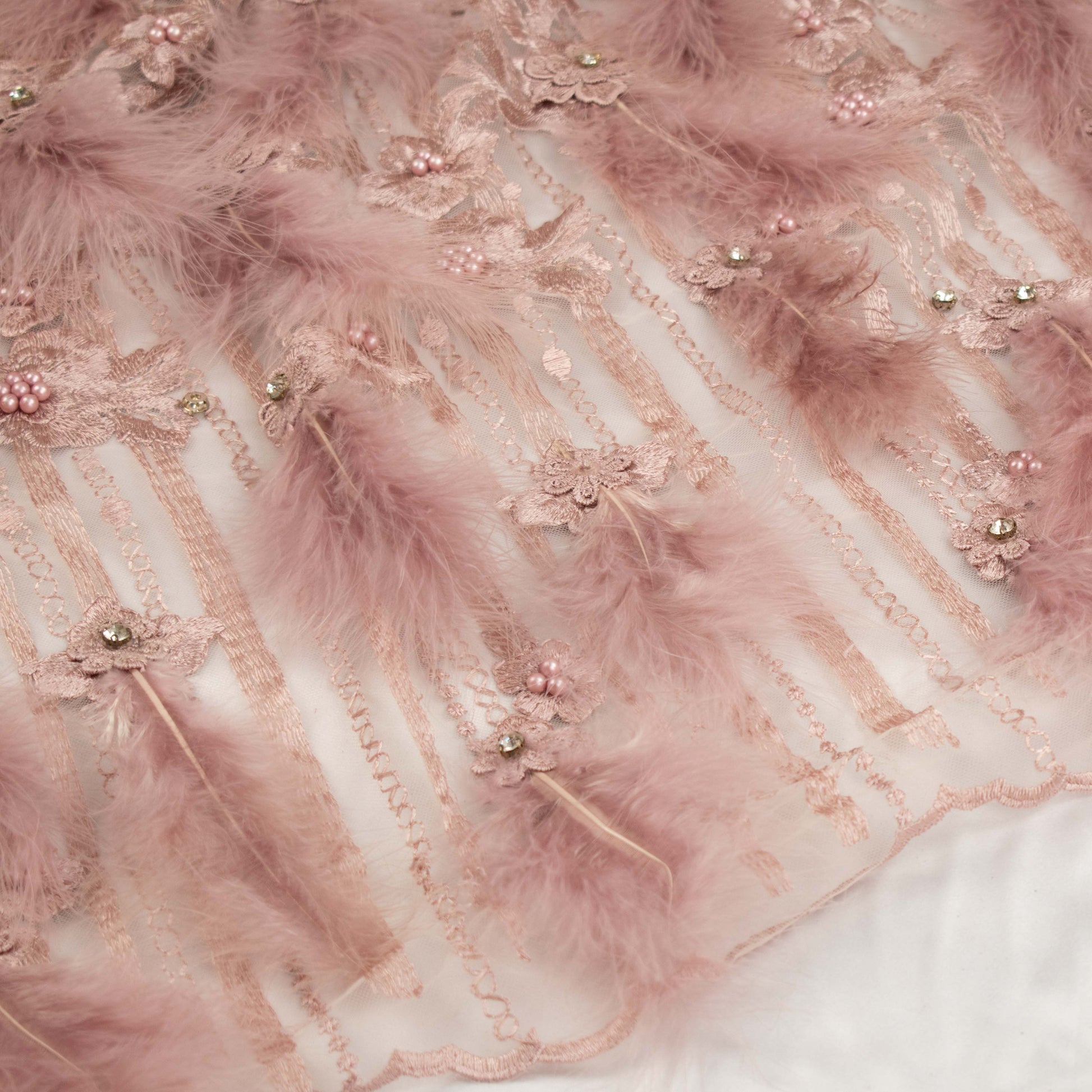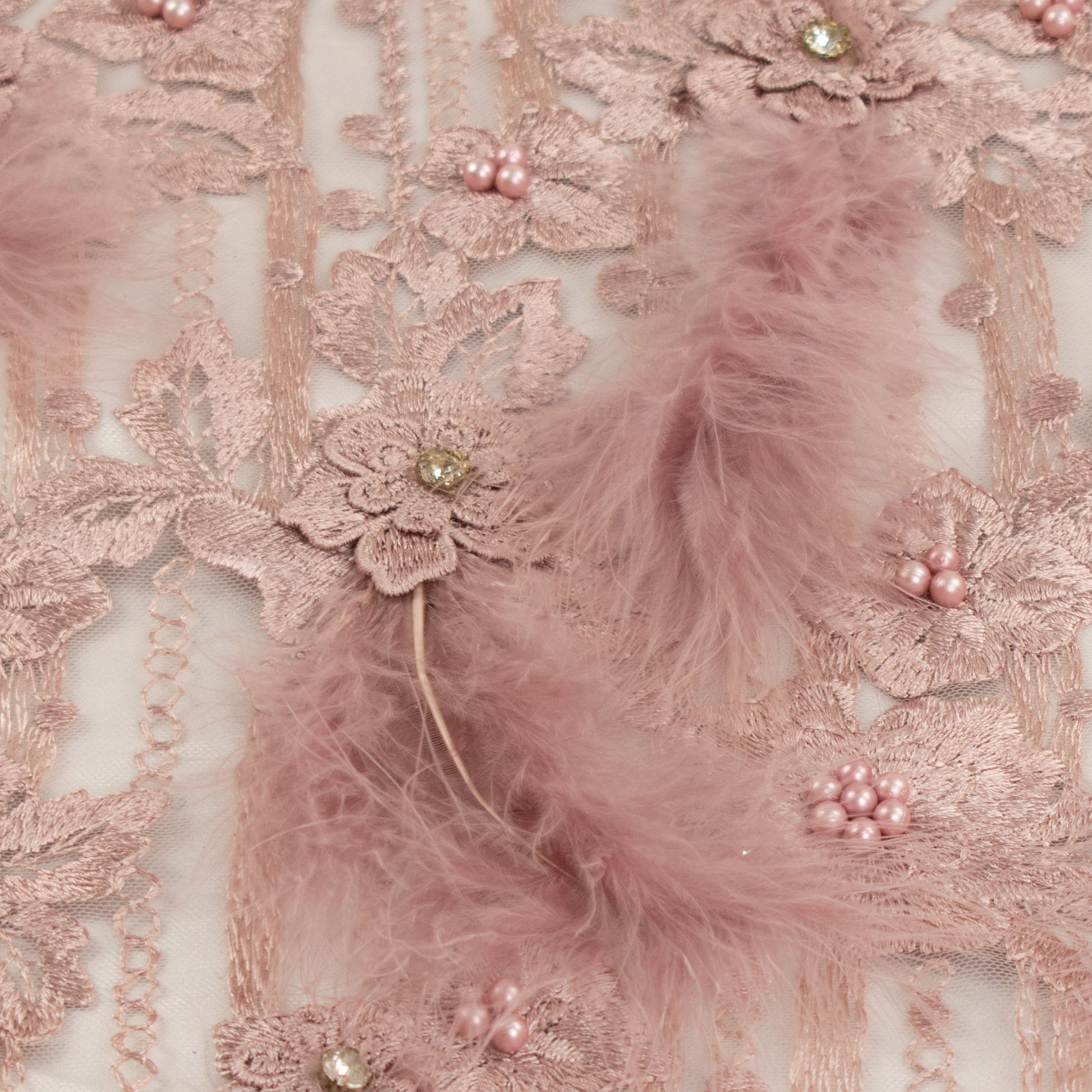Diamante Feather 3D Flower Lace Dusty Pink 140CM Wide