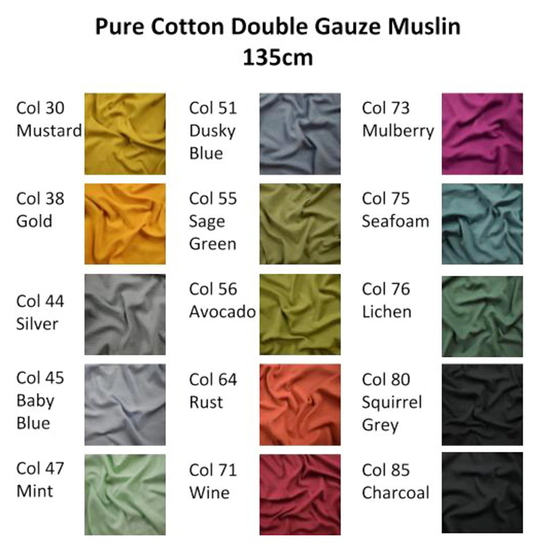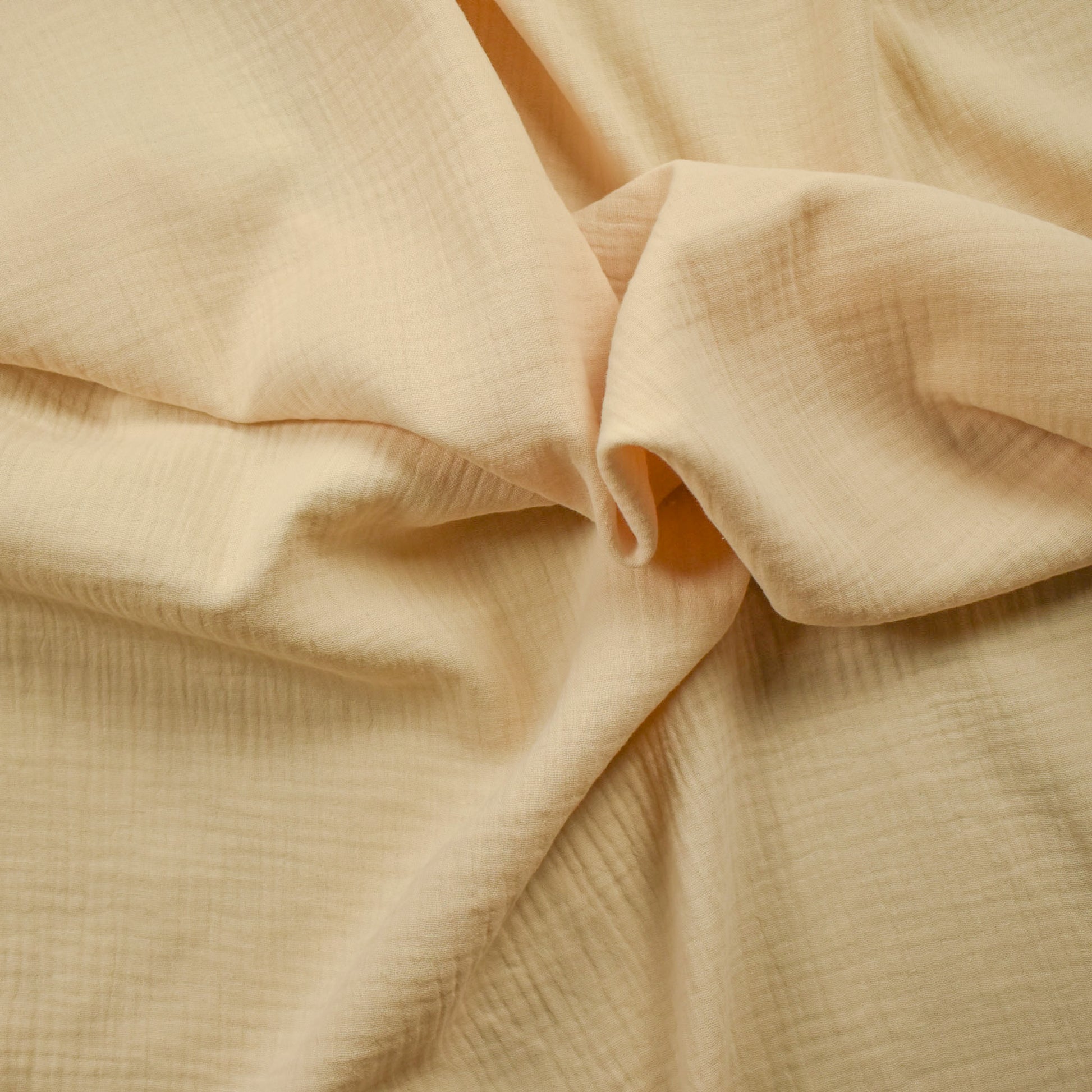 Our Double Gauze Muslin is whisper soft and 100% cotton muslin, ideal for delicate apparel items, baby clothes, leisure wear, wraps, and loose summer frocks and shirts. This fabric is cool and breathable, available in both light tones and pastel colors.