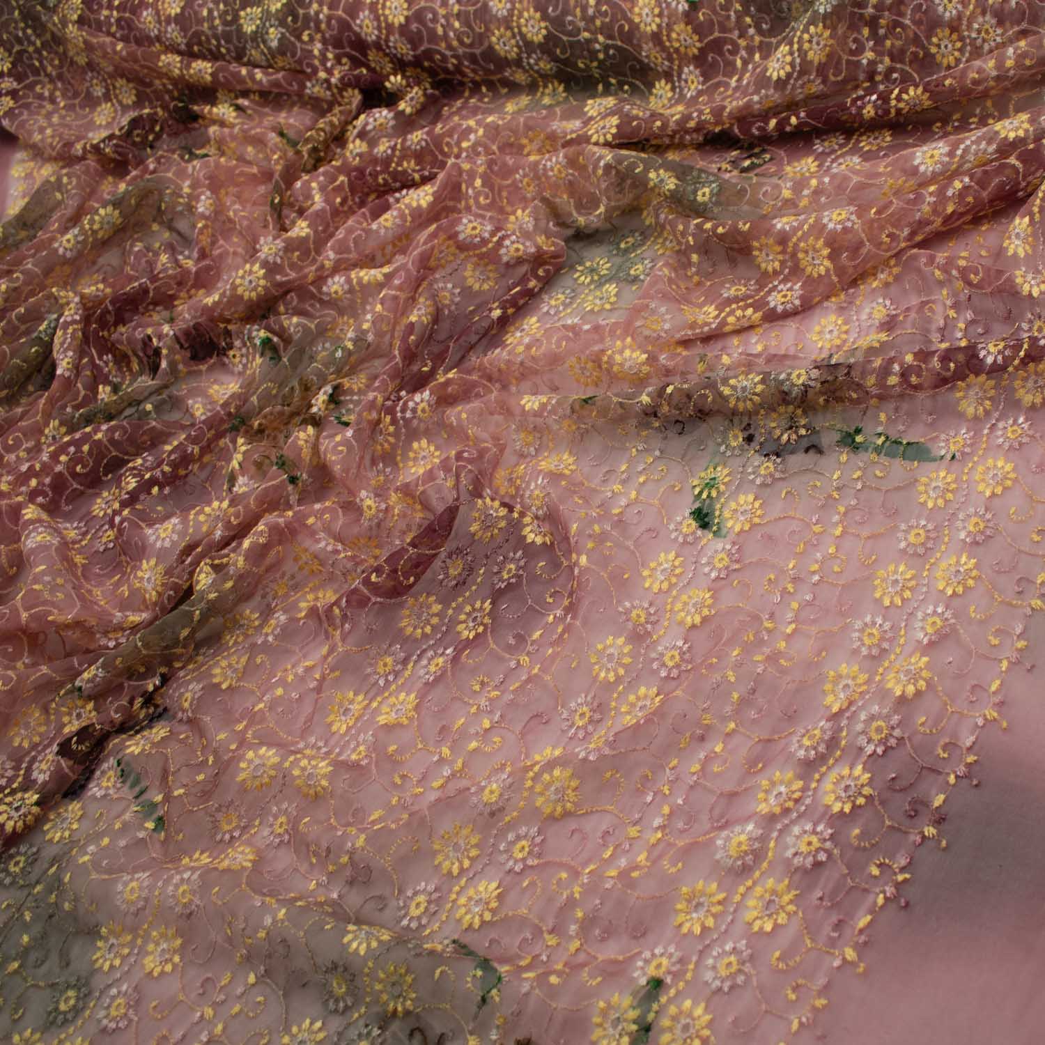 A flower embroidered lace on a shaded lightweight chiffon backing. Our Embroidered Floral Vines Shaded Chiffon Lace is the perfect choice for those special party dresses, cocktails, costumes and dancewear. It can also be used for event decorating on tables, backdrops or as chair sashes to add that special touch.