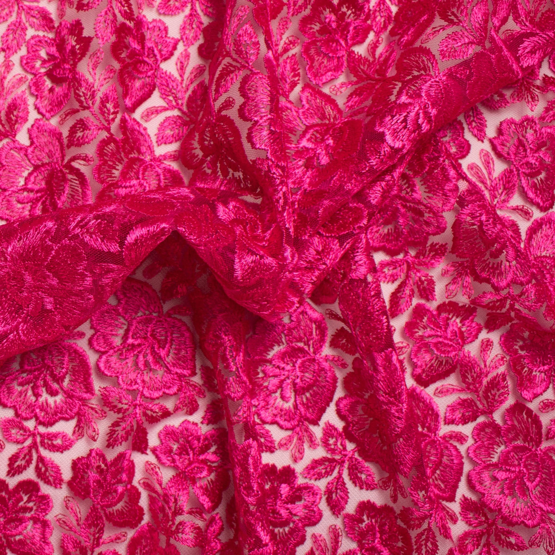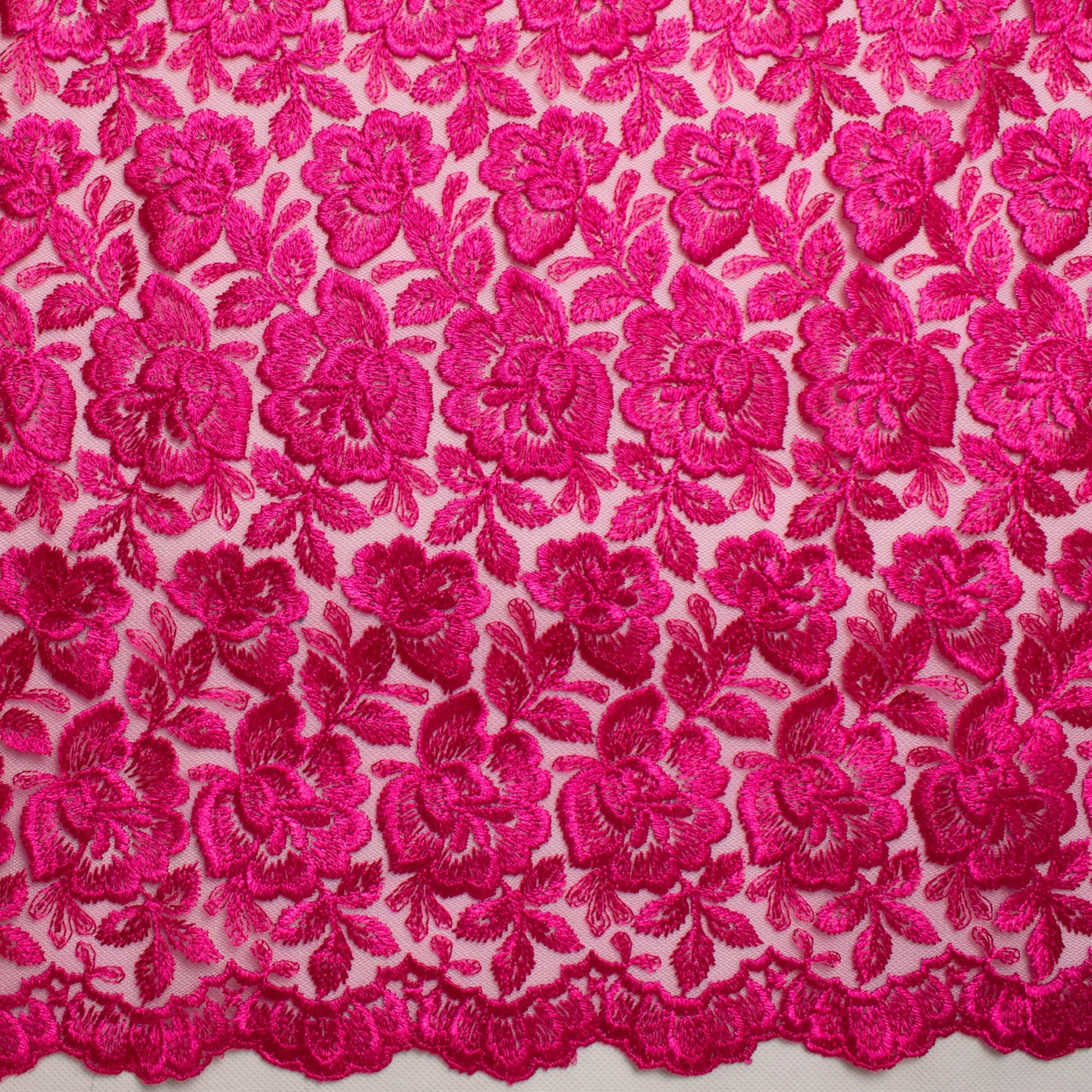 A densely Embroidered Lace on a tulle net backing with double scalloped edges. The embroidery comes in two sizes - A larger floral design and a smaller all over floral pattern. With over fifty colours to choose from, Our Embroidered Lace is the perfect choice for bridal wear, cocktail wear, evening wear as well as mother of the bride. Use a matching or contrasting colour from any of our beautiful Crepe Back Satins as an underlining to finish your garment.