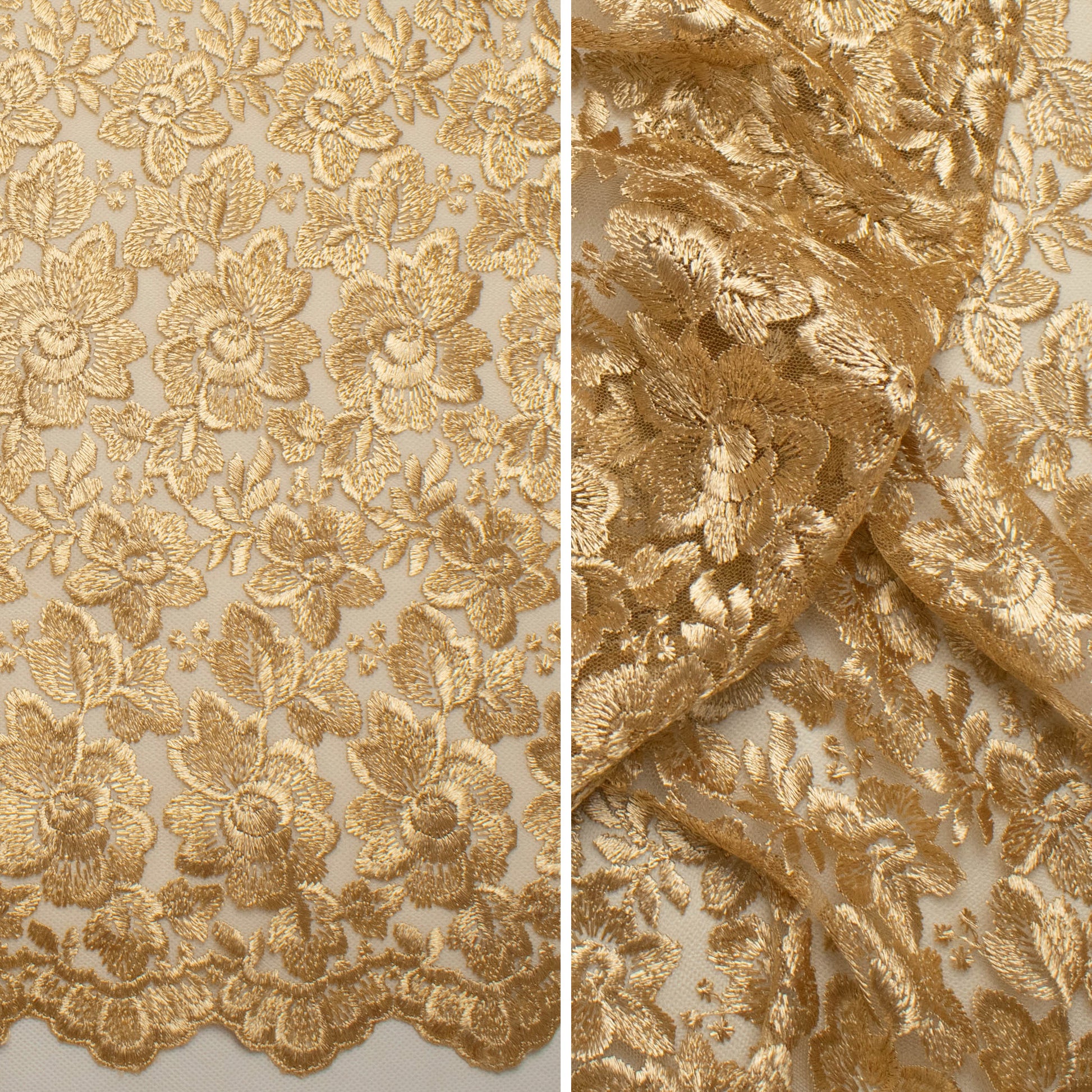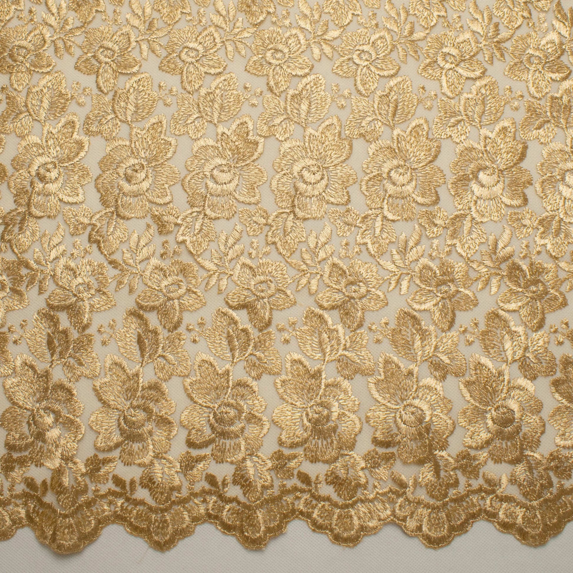 A densely Embroidered Lace on a tulle net backing with double scalloped edges. The embroidery comes in two sizes - A larger floral design and a smaller all over floral pattern. With over fifty colours to choose from, Our Embroidered Lace is the perfect choice for bridal wear, cocktail wear, evening wear as well as mother of the bride. Use a matching or contrasting colour from any of our beautiful Crepe Back Satins as an underlining to finish your garment.