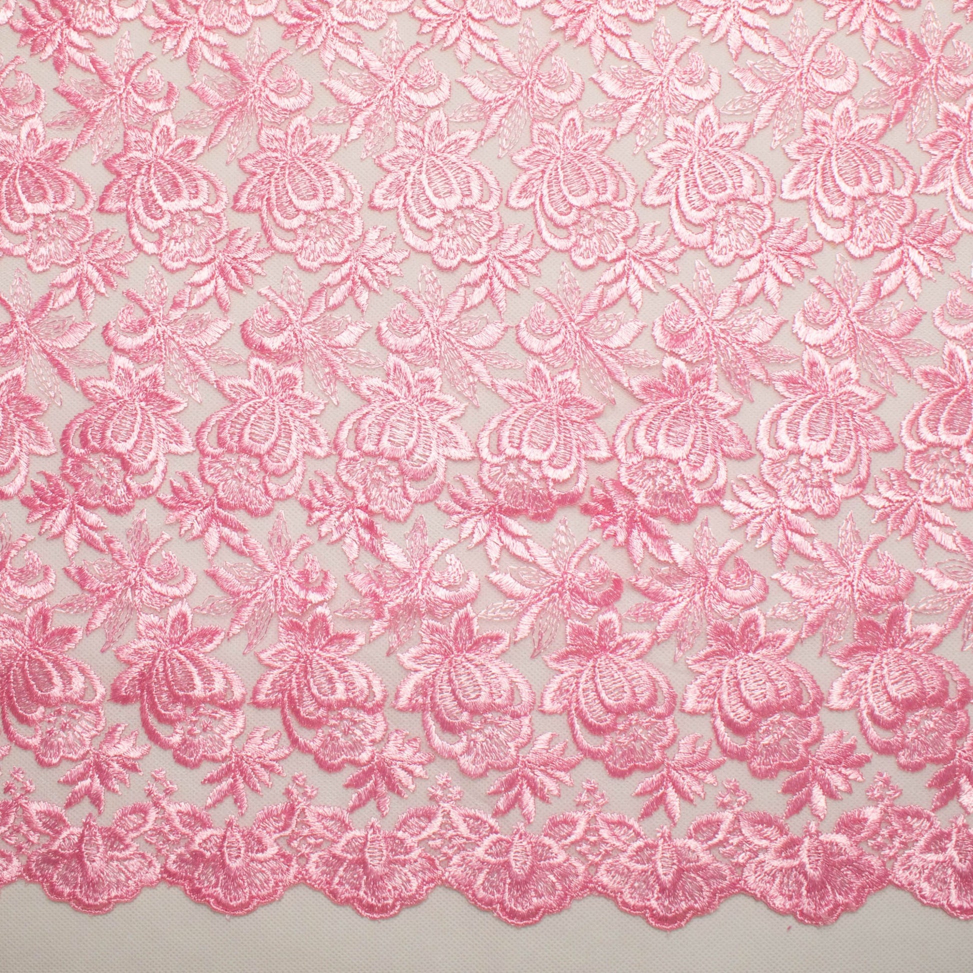A densely Embroidered Lace on a tulle net backing with double scalloped edges. The embroidery comes in two sizes - A larger floral design and a smaller all over floral pattern. With over fifty colours to choose from, Our Embroidered Lace is the perfect choice for bridal wear, cocktail wear, evening wear as well as mother of the bride. Use a matching or contrasting colour from any of our beautiful Crepe Back Satins as an underlining to finish your garment.