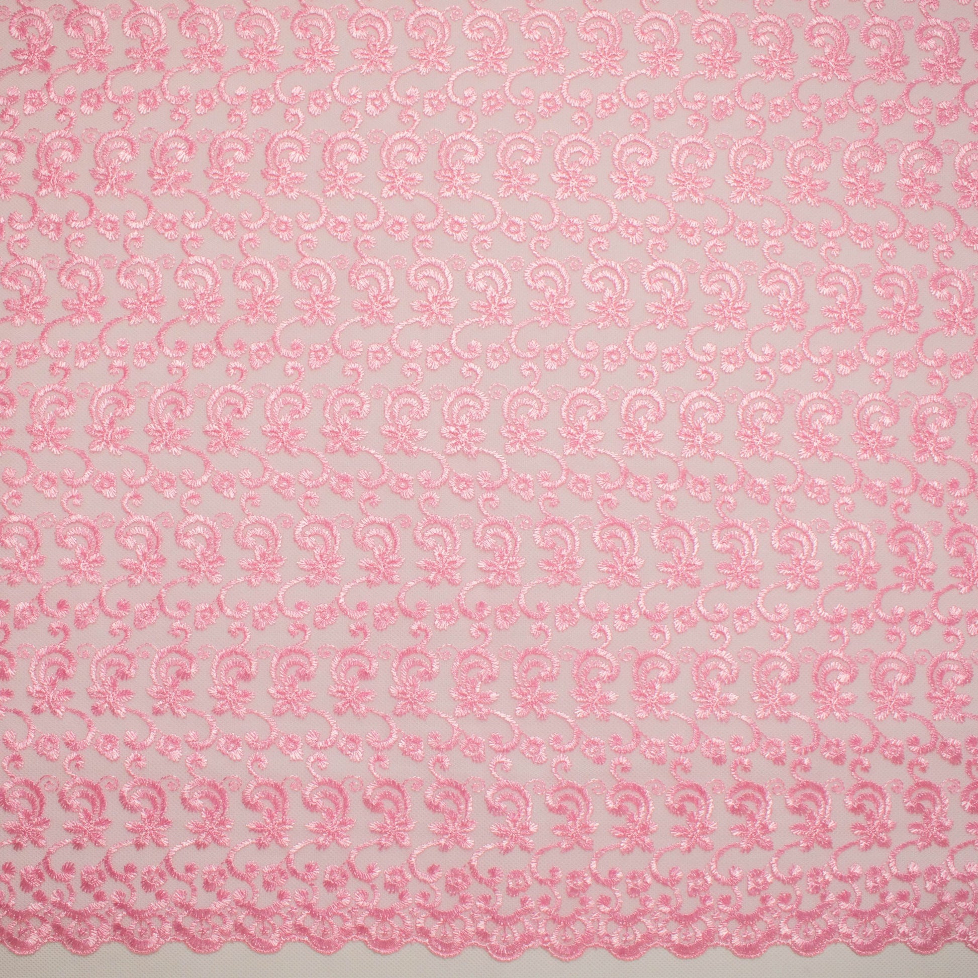 A densely Embroidered Lace on a tulle net backing with double scalloped edges. The embroidery comes in two sizes - A larger floral design and a smaller all over floral pattern. With over fifty colours to choose from, Our Embroidered Lace is the perfect choice for bridal wear, cocktail wear, evening wear as well as mother of the bride. Use a matching or contrasting colour from any of our beautiful Crepe Back Satins as an underlining to finish your garment.