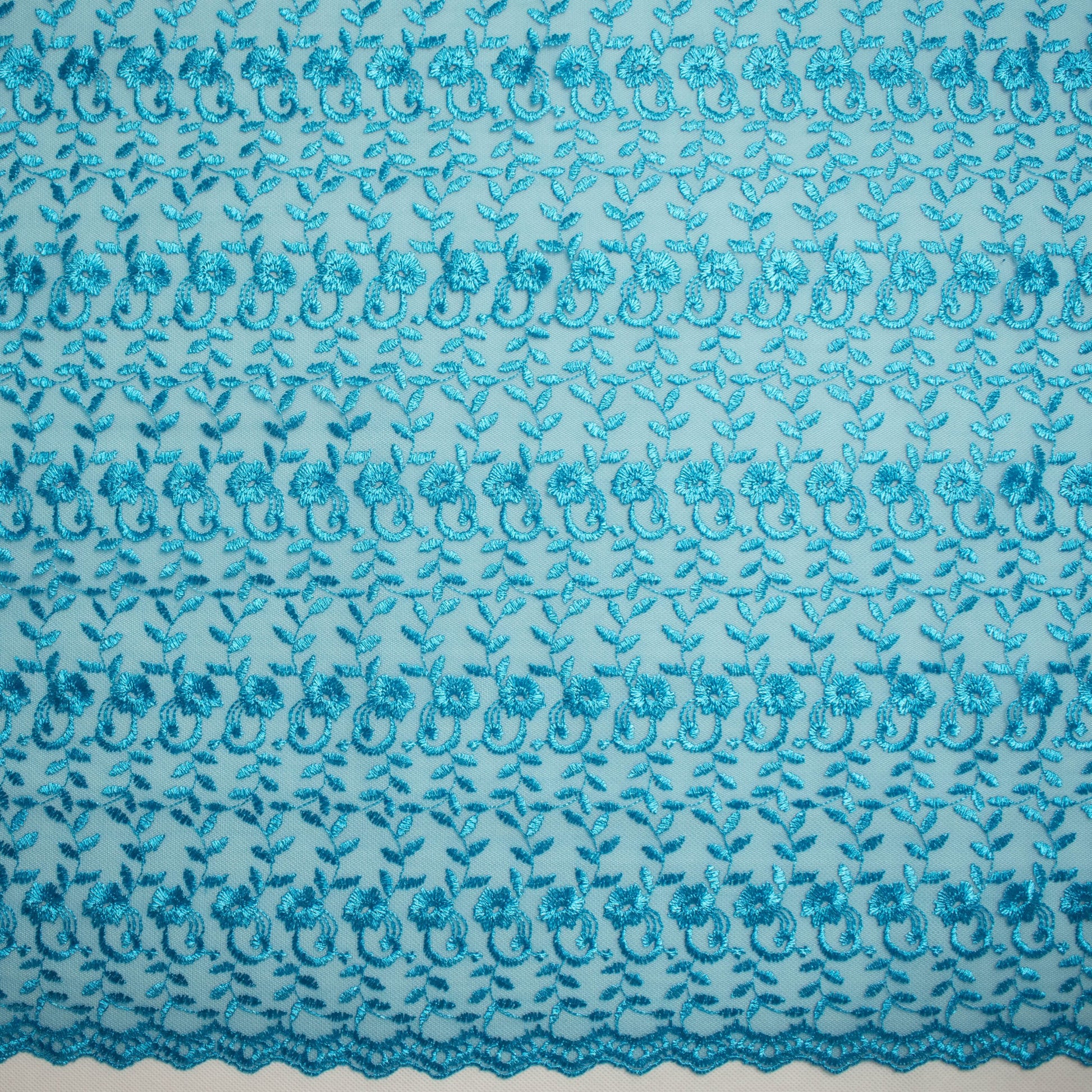 A densely Embroidered Lace on a tulle net backing with double scalloped edges. The embroidery comes in two sizes - A larger floral design and a smaller all over floral pattern. With over fifty colours to choose from, Our Embroidered Lace is the perfect choice for bridal wear, cocktail wear, evening wear as well as mother of the bride. Use a matching or contrasting colour from any of our beautiful Crepe Back Satins as an underlining to finish your garment.