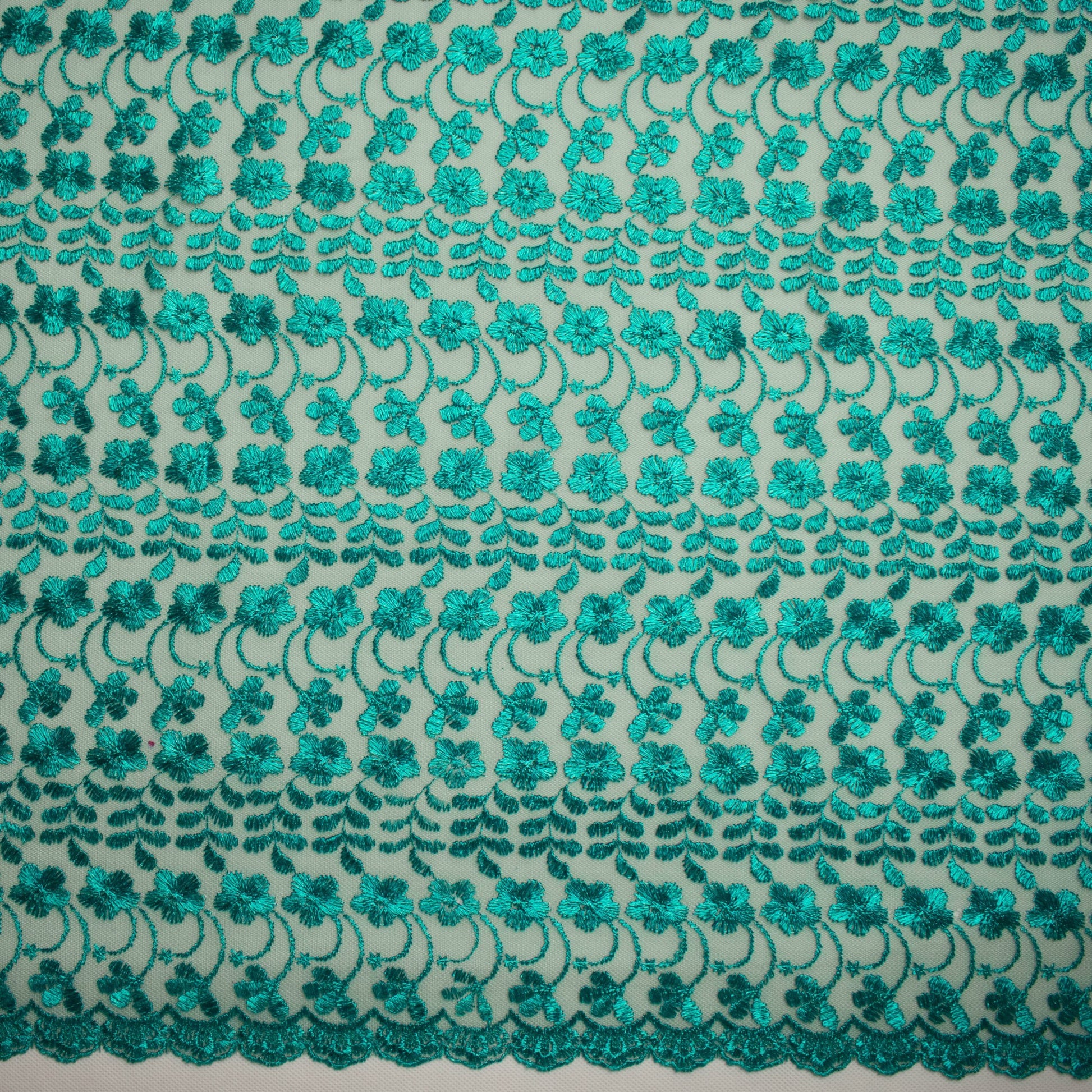 A densely Embroidered Lace on a tulle net backing with double scalloped edges. The embroidery comes in two sizes - A larger floral design and a smaller all over floral pattern. With over fifty colours to choose from, Our Embroidered Lace is the perfect choice for bridal wear, cocktail wear, evening wear as well as mother of the bride. Use a matching or contrasting colour from any of our beautiful Crepe Back Satins as an underlining to finish your garment.