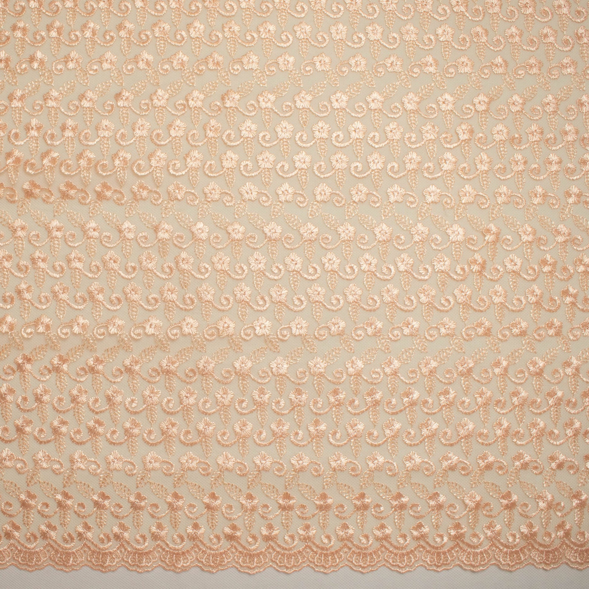 A densely Embroidered Lace on a tulle net backing with double scalloped edges. The embroidery comes in two sizes - A larger floral design and a smaller all over floral pattern. With over fifty colours to choose from, Our Embroidered Lace is the perfect choice for bridal wear, cocktail wear, evening wear as well as mother of the bride. Use a matching or contrasting colour from any of our beautiful Crepe Back Satins as an underlining to finish your garment.