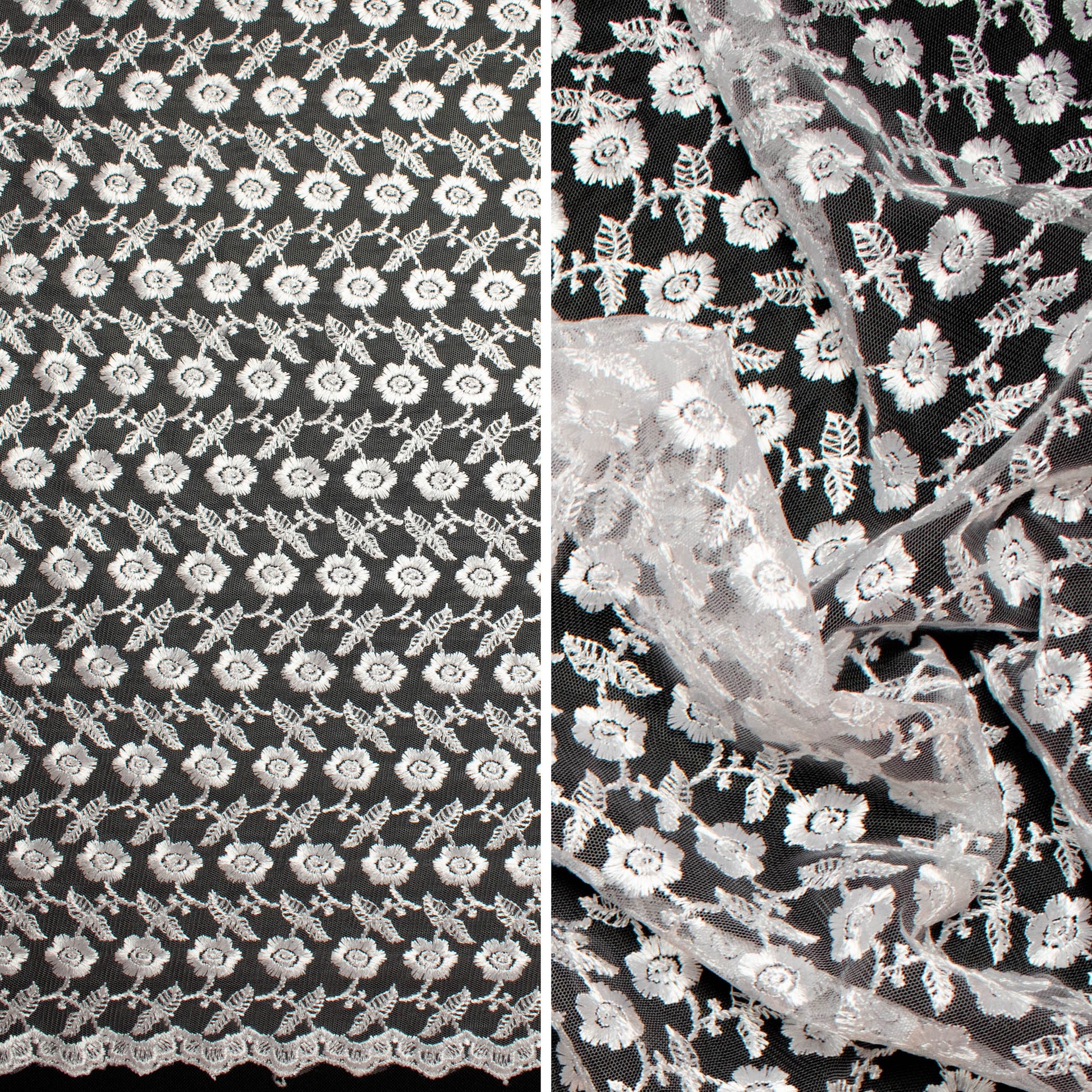 A densely Embroidered Lace on a tulle net backing with double scalloped edges. The embroidery comes in two sizes - A larger floral design and a smaller all over floral pattern. With over fifty colours to choose from, Our Embroidered Lace is the perfect choice for bridal wear, cocktail wear, evening wear as well as mother of the bride. Use a matching or contrasting colour from any of our beautiful Crepe Back Satins as an underlining to finish your garment.