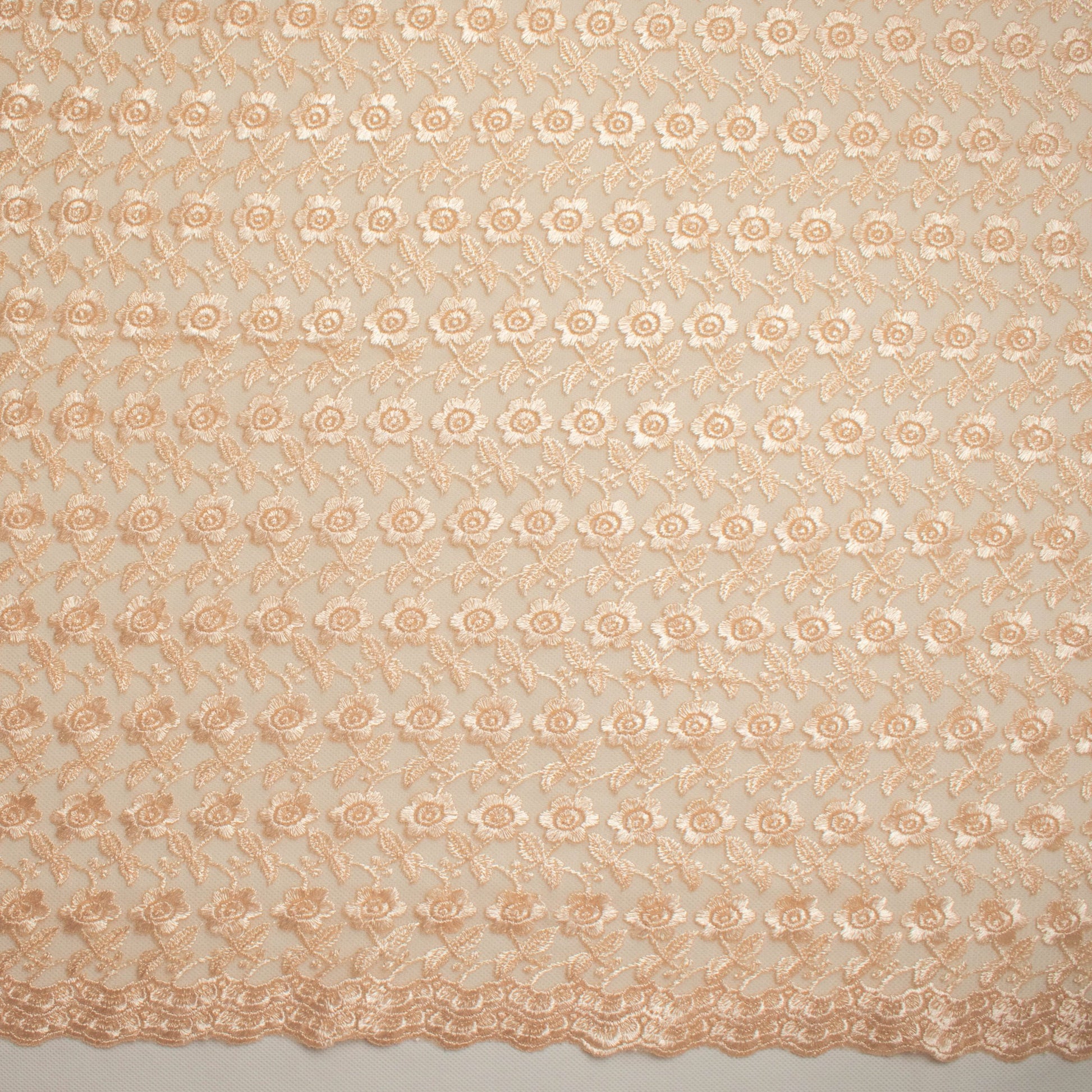 A densely Embroidered Lace on a tulle net backing with double scalloped edges. The embroidery comes in two sizes - A larger floral design and a smaller all over floral pattern. With over fifty colours to choose from, Our Embroidered Lace is the perfect choice for bridal wear, cocktail wear, evening wear as well as mother of the bride. Use a matching or contrasting colour from any of our beautiful Crepe Back Satins as an underlining to finish your garment.