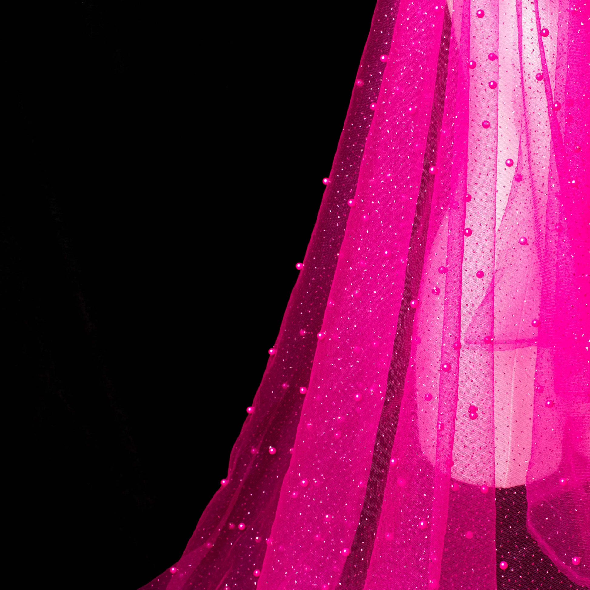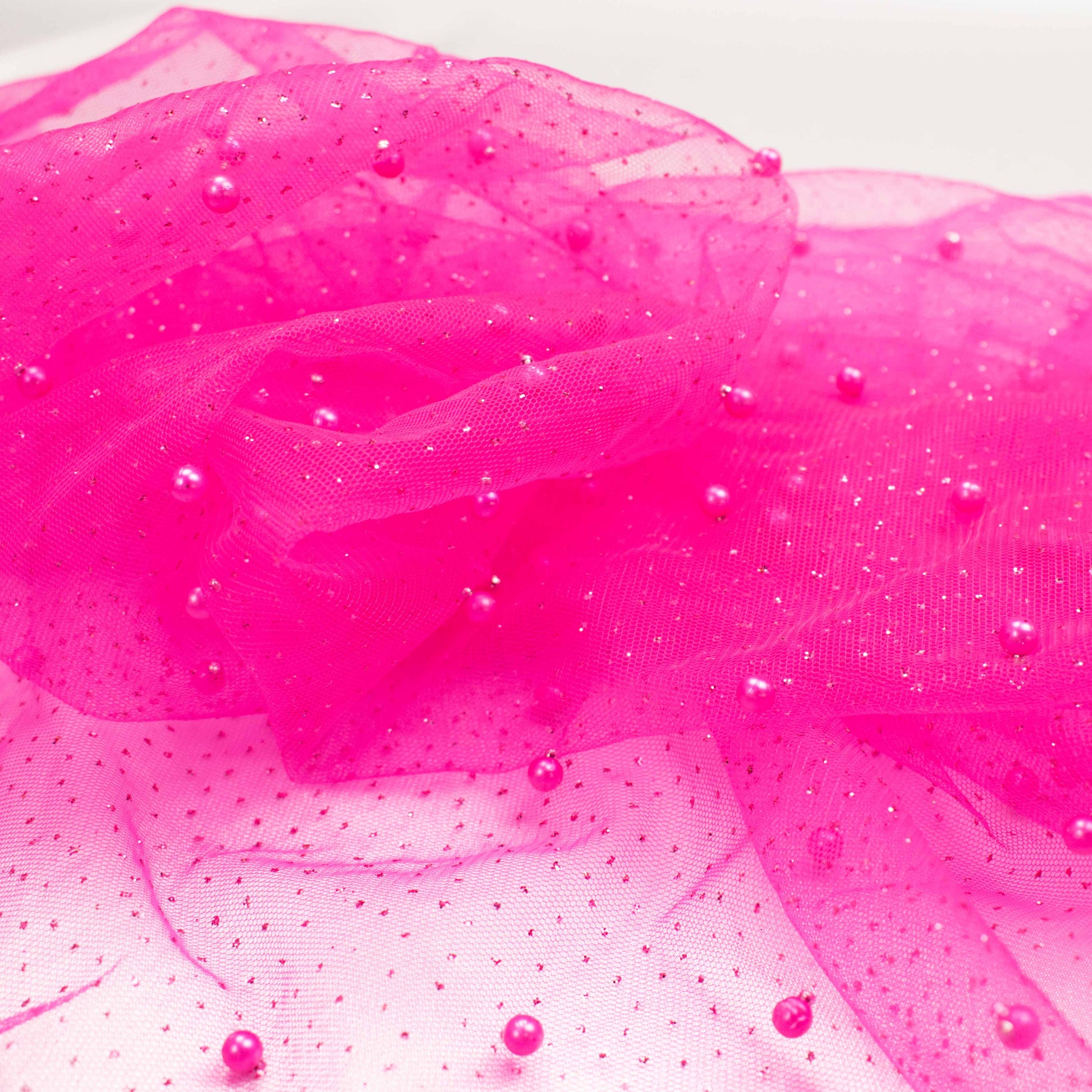 Glitter Tulle Pearl Netting Fuschia