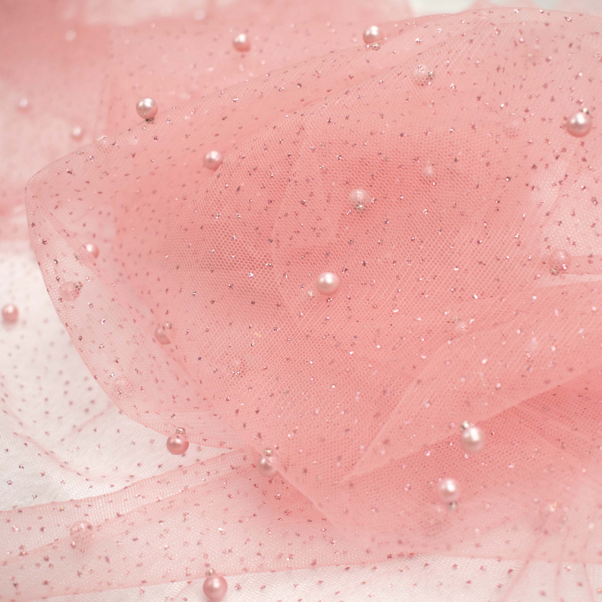 A soft, fine textured glitter tulle netting with tiny pearls attached for those special party dresses, cocktail, costumes and dancewear. Pearl Tulle Netting can also be used for event decorating on tables or as chair sashes.