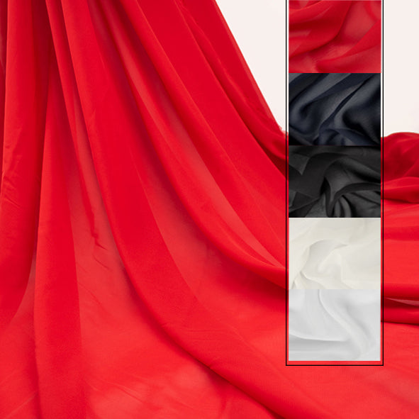 High Multi Chiffon is a lightweight sheer fabric that softly drapes and can be used for blouses, skirts, dresses, lingerie, scarves & bridesmaids' outfits.