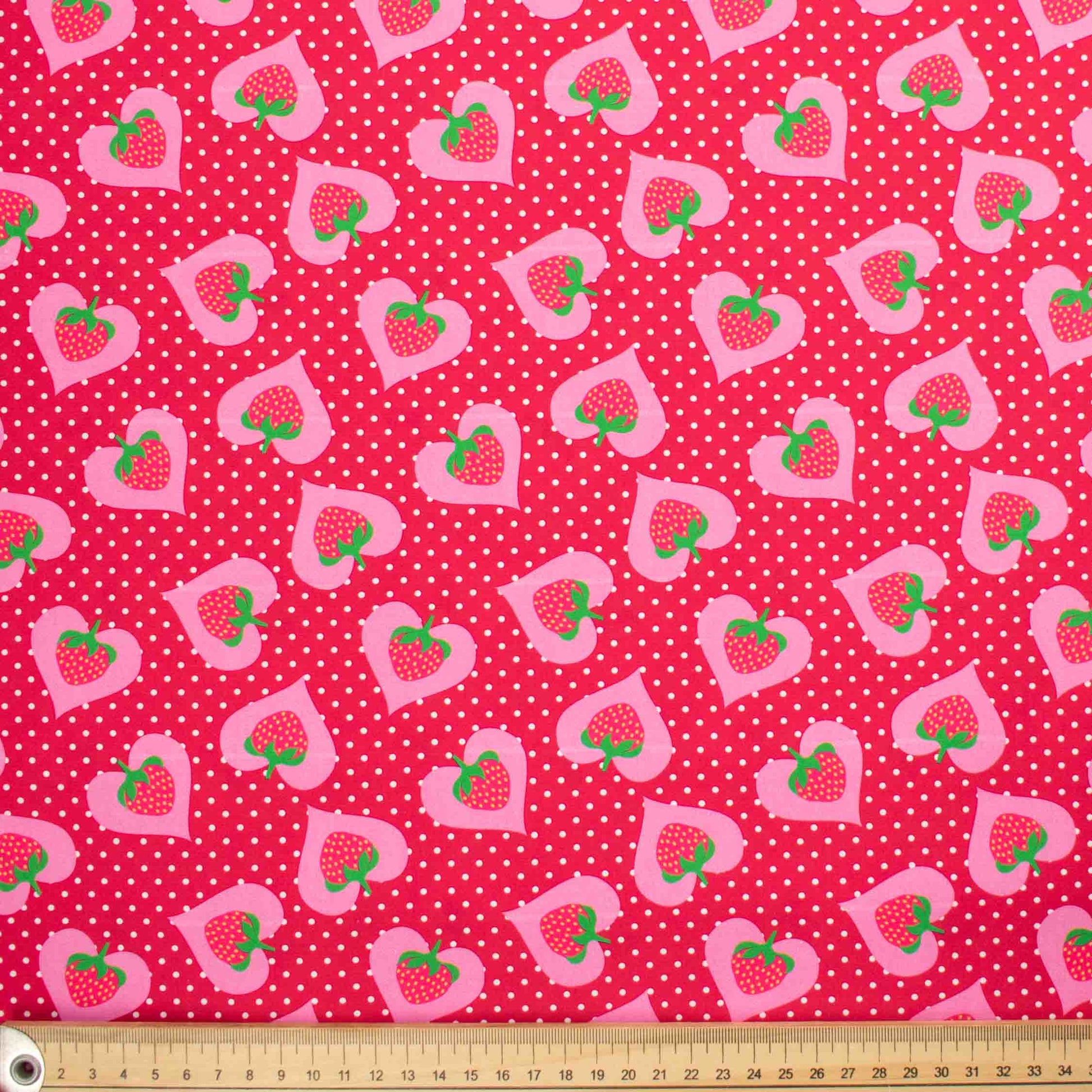 Indie Pop Strawberry Collection #06 Strawberry & Heart on Pink Cotton Prints
