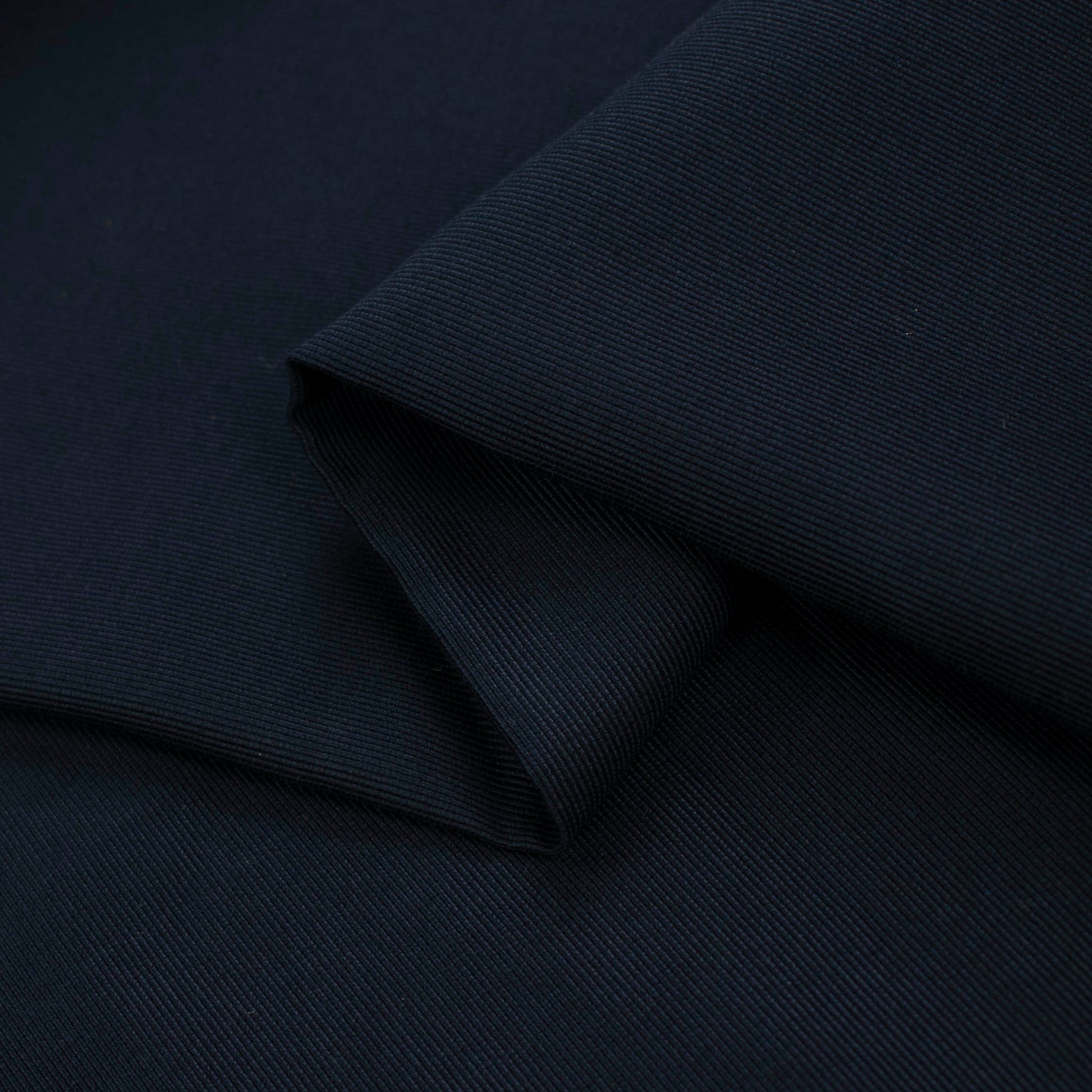 Japanese cotton suiting with a pronounced ribbed twill texture and deep navy tone. At 340GSM, it has a firm, structured handle with a clean, tailored drape—breathable yet durable, pressing crisply and holding pleats and topstitching beautifully. Ideal for blazers and suiting, trousers/chinos, skirts and pinafores, utility or chore jackets, uniforms, workwear and structured dresses.