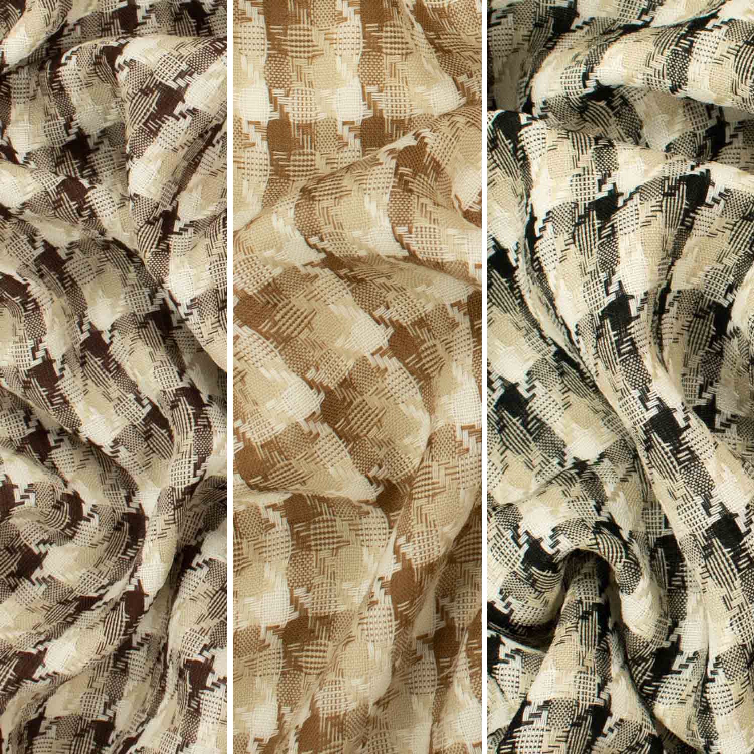 Introducing our Japanese Loose Weave Houndstooth Check Wool Suiting—a fabric that brings together sophistication, tradition, and modern aesthetics. The loose-weave construction adds breathability and a relaxed drape to your projects. The fabric features the classic houndstooth check pattern, a timeless design element that instantly elevates any garment or accessory. This wool suiting fabirc is ideal for tailored suits, blazers, skirts, and trousers, offering a delicate balance between form and function.