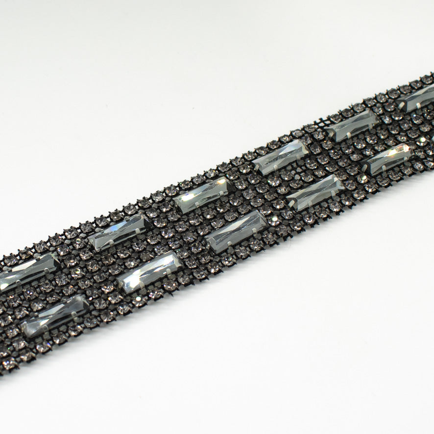 Product Overview:  Elevate your designs with our Lurex Diamante Trim Crystal Rhinestone Ribbon, a luxurious addition to any project. This trim features dazzling crystal rhinestones on a high-quality, heavy Lurex base, offering a premium finish and lasting durability. This versatile trim is ideal for adding glamour to dresses, accessories, costumes, and decor projects. Its weight and quality make it perfect for high-end creations where elegance is key.