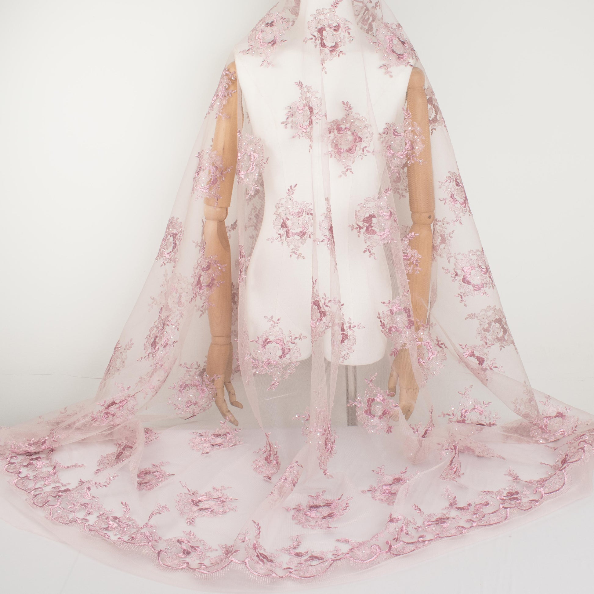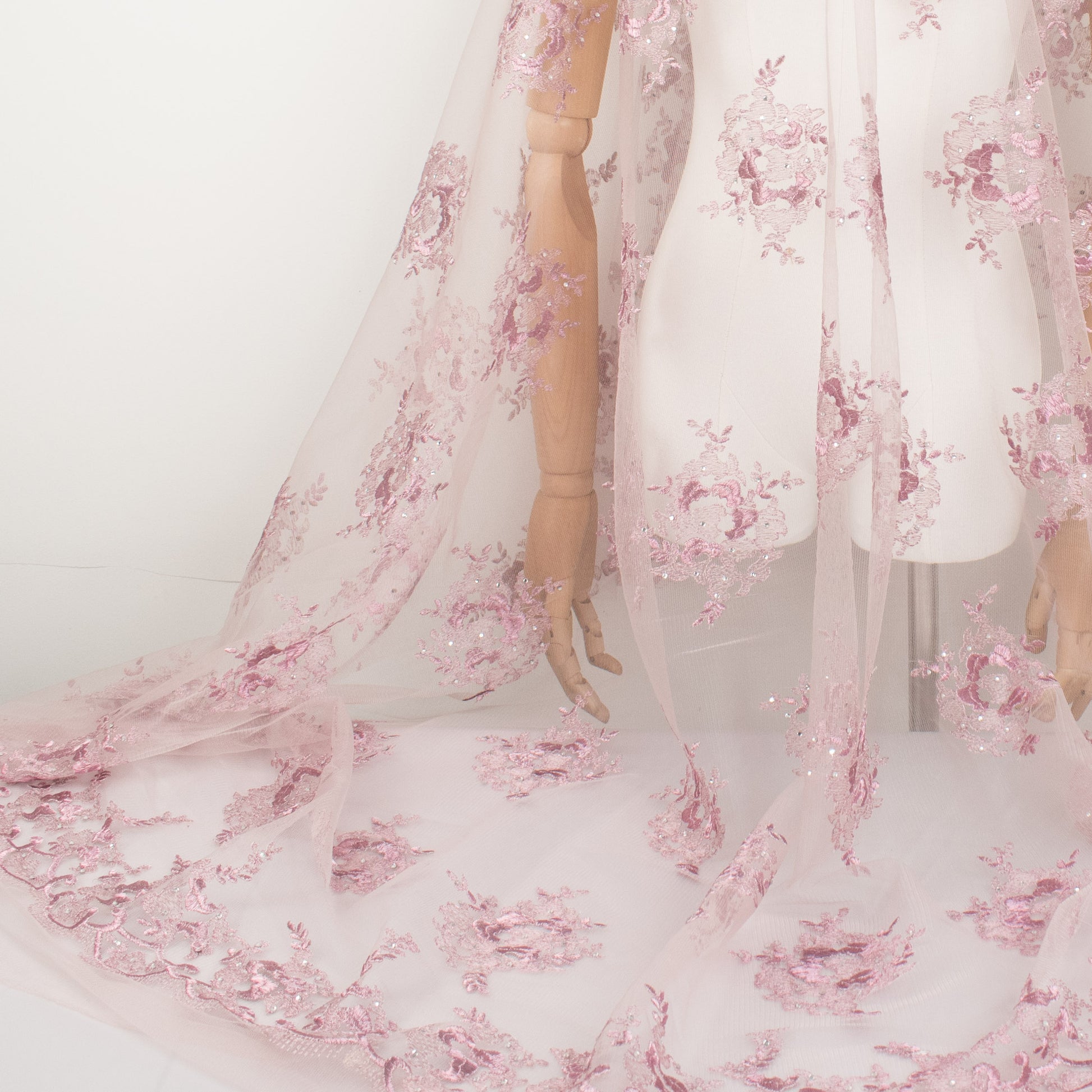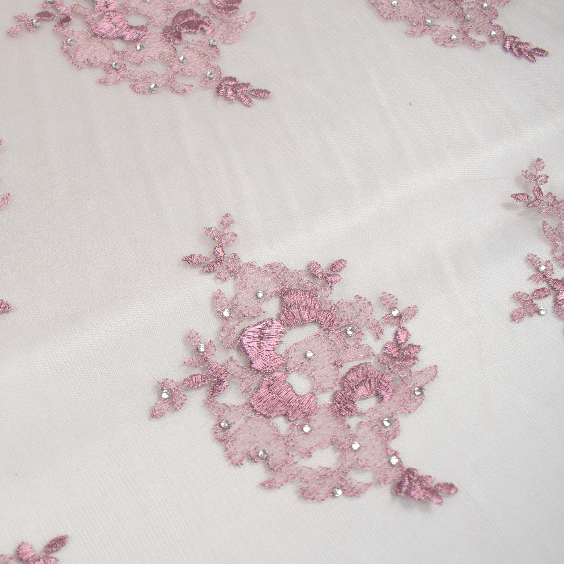 Metallic Diamante Embroidery Lace Pink