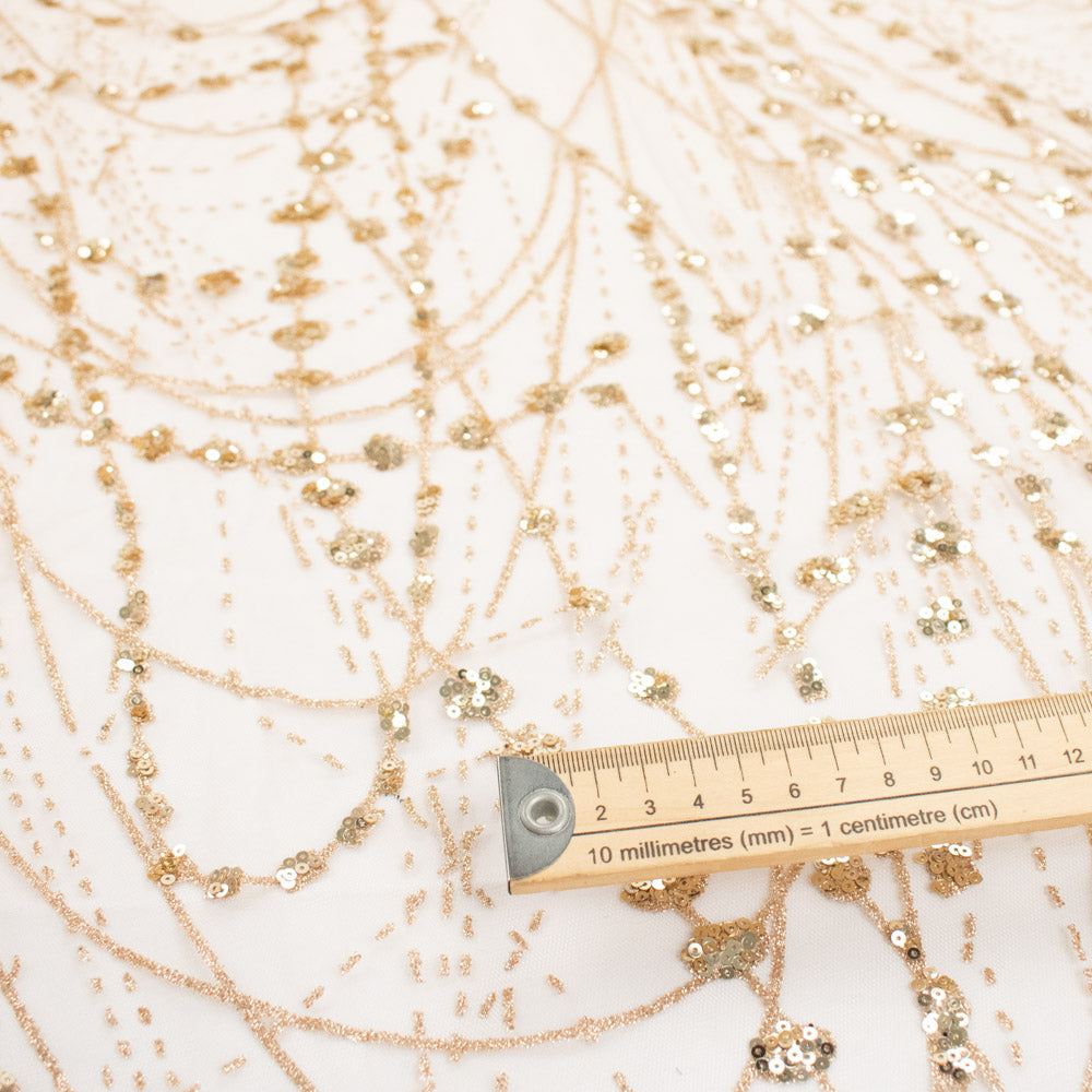 Metallic Glitter Sequin Mesh Lace Design-Gold 2
