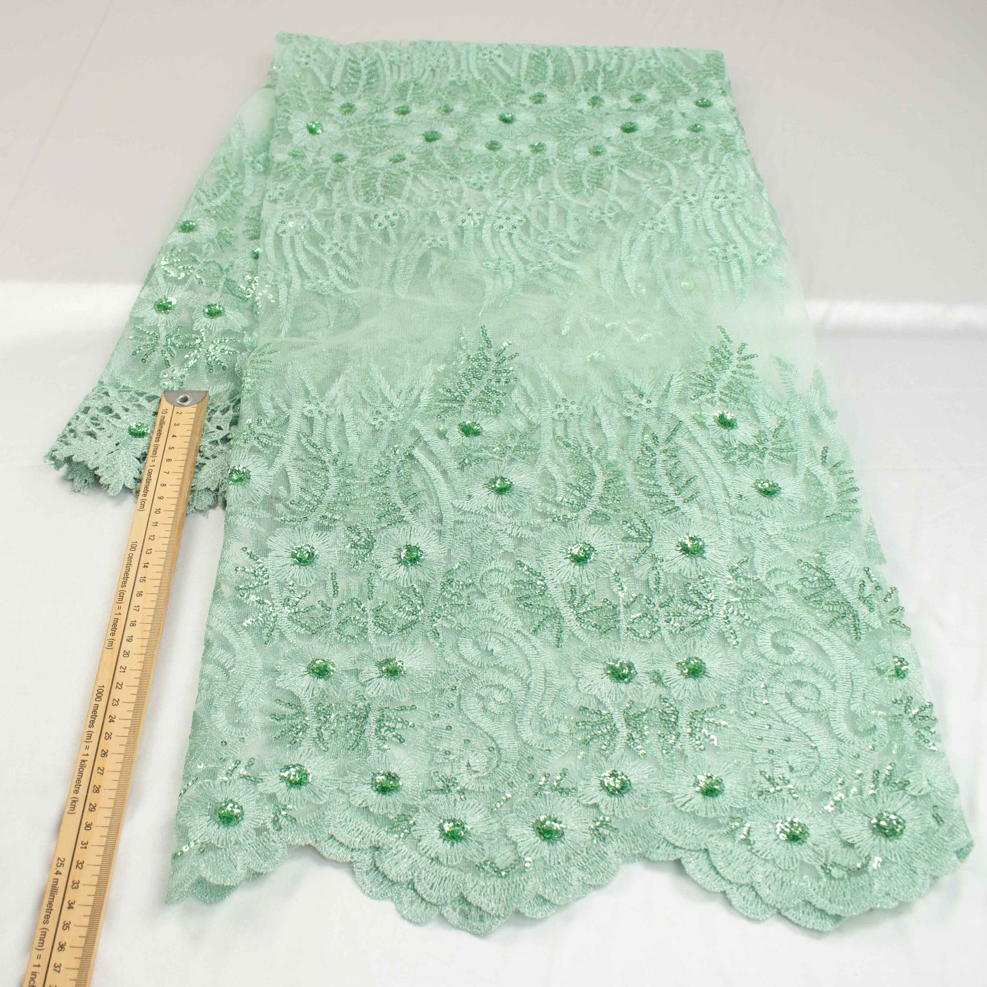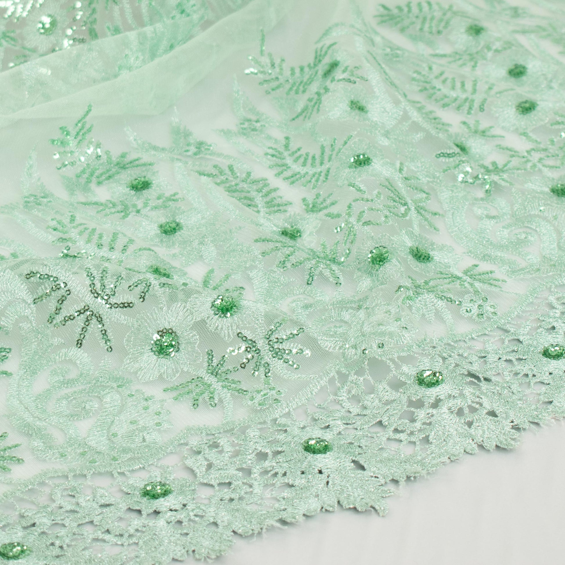 Metallic Sequin Glitter Embroidery Jewel Lace Mint