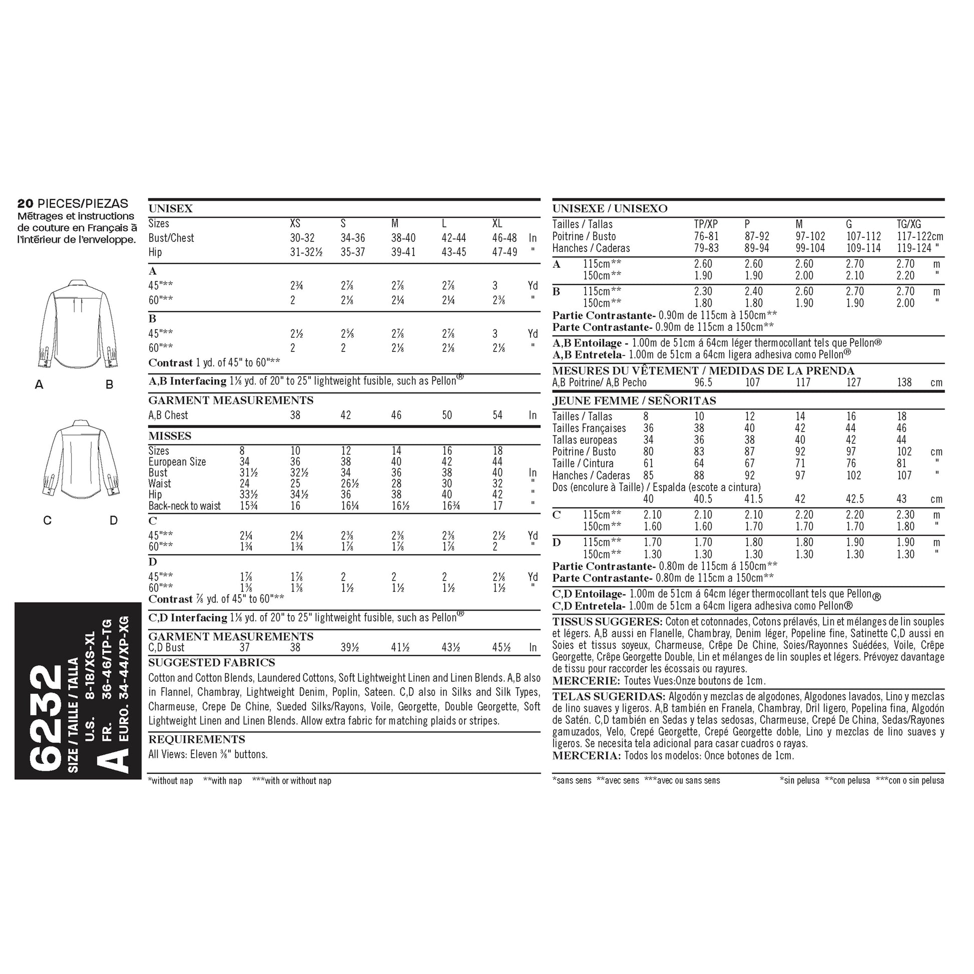 Misses' and Men's Button Down Shirt - New Look Sewing Pattern N6232