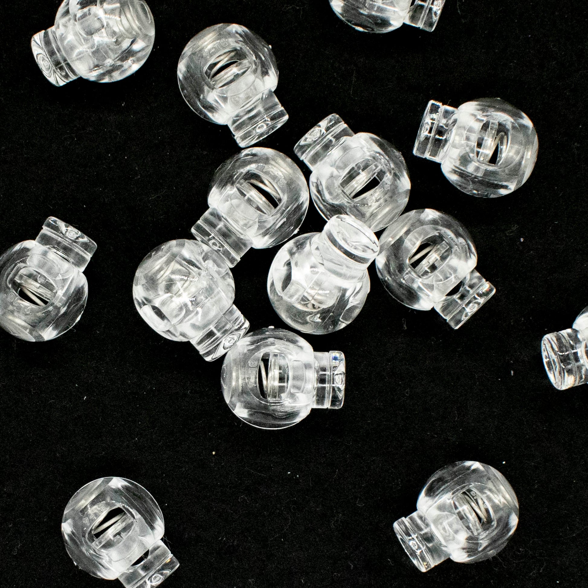 This high-clarity, dome-shaped cord lock features a single-hole design with a strong internal spring for reliable hold and tension. Its transparent construction offers a clean, discreet look, making it ideal for both functional and aesthetic applications.