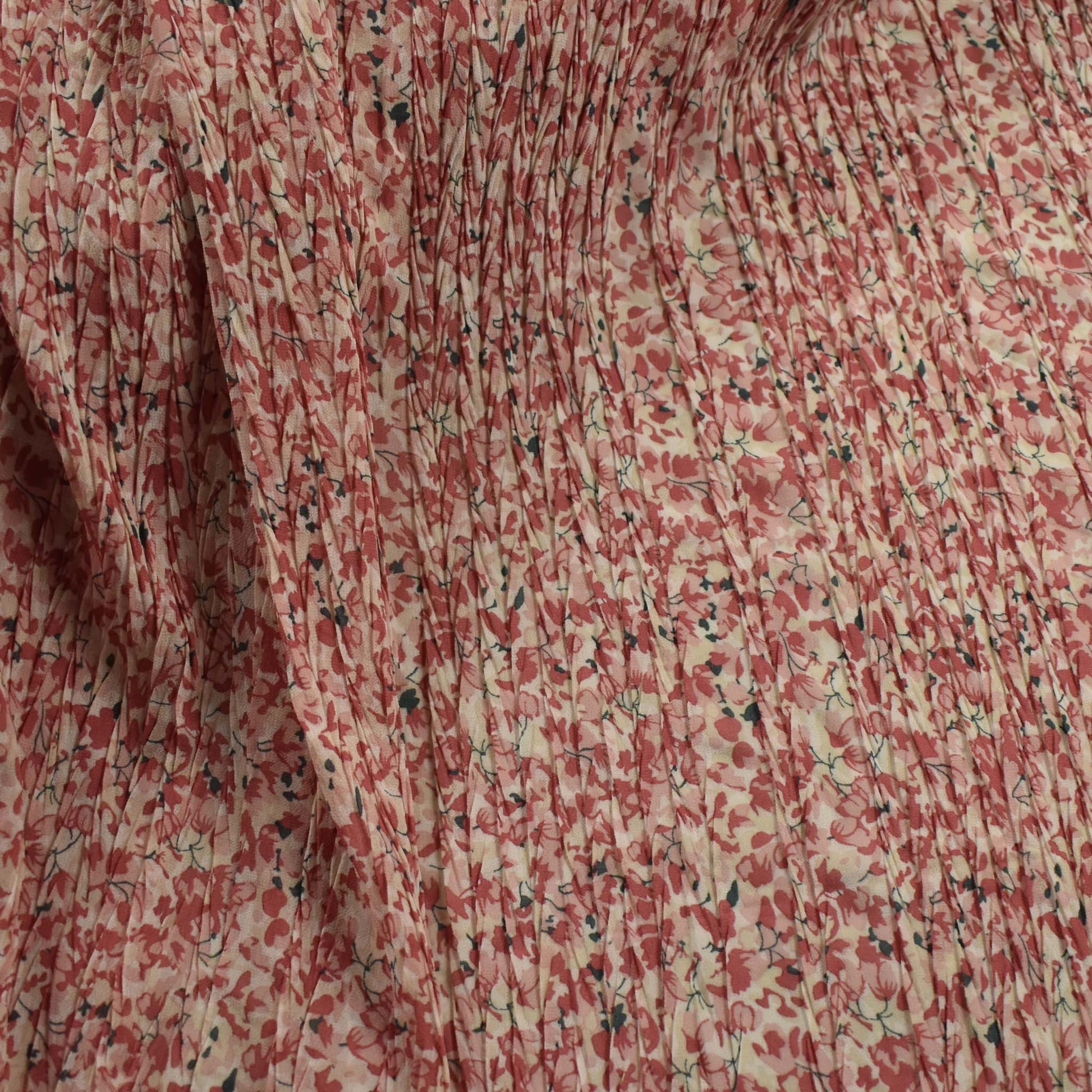 A beautiful assortment of floral prints on a pleated crepe / faille /georgette base. These pleated prints are ideal for dresses, skirts and blouses especially off the shoulder designs. It's a great fabric for summer.