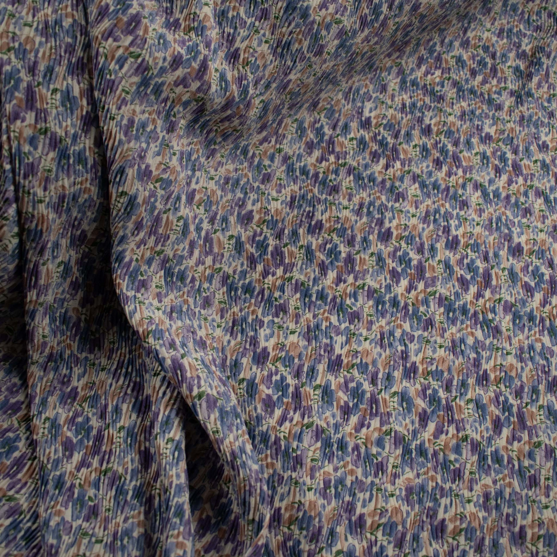 A beautiful assortment of floral prints on a pleated crepe / faille /georgette base. These pleated prints are ideal for dresses, skirts and blouses especially off the shoulder designs. It's a great fabric for summer.