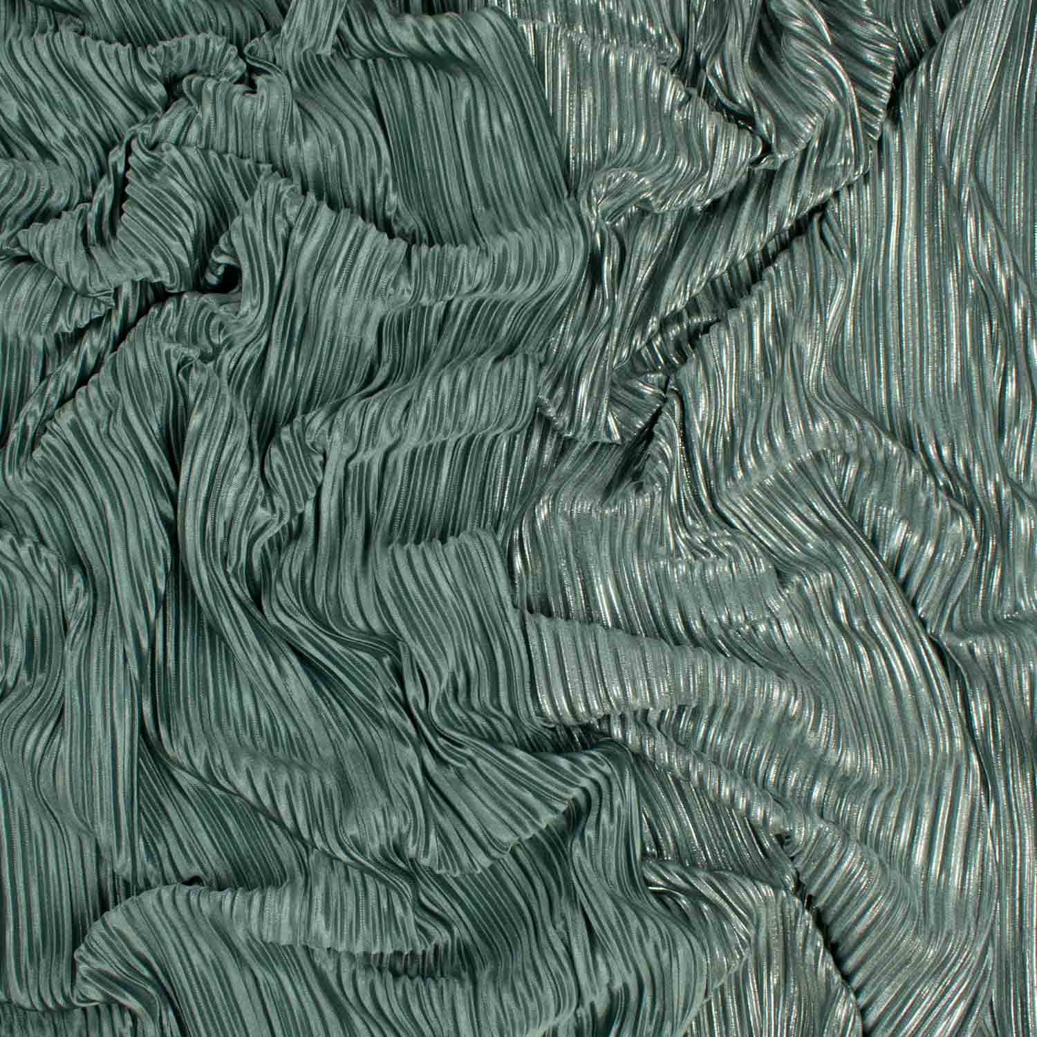 Enhance your designs with our Pleated Glimmer Reversible Satin. The face side subtly sparkles with hints of gold or silver lurex, ideal for infusing luxury into your projects. In contrast, the back side presents a smooth, glimmer-free surface, offering a balanced and versatile option. The beautiful drape of our Pleated Glimmer Satin makes it perfect for evening wear and dance costumes. Sold by the meter, this satin combines style, durability, and easy handling. Illuminate your creative ventures with our Pleated Glimmer Reversible Satin.