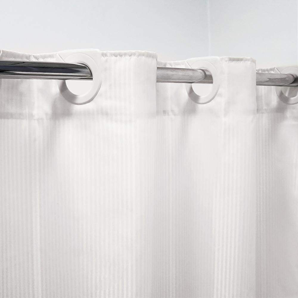 Shower Curtains have strong integrated hooks that allow you to hang the curtain along a rail without the need for buying separate hooks. The fabric features a small classic stripe pattern that will suit all bathrooms, no matter what your style, and the bottom corners contain weighted magnets to help keep the water in the shower area.