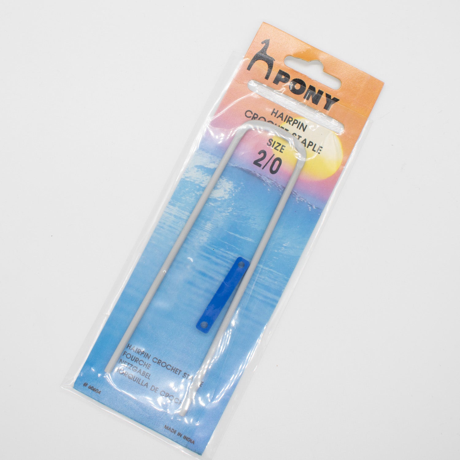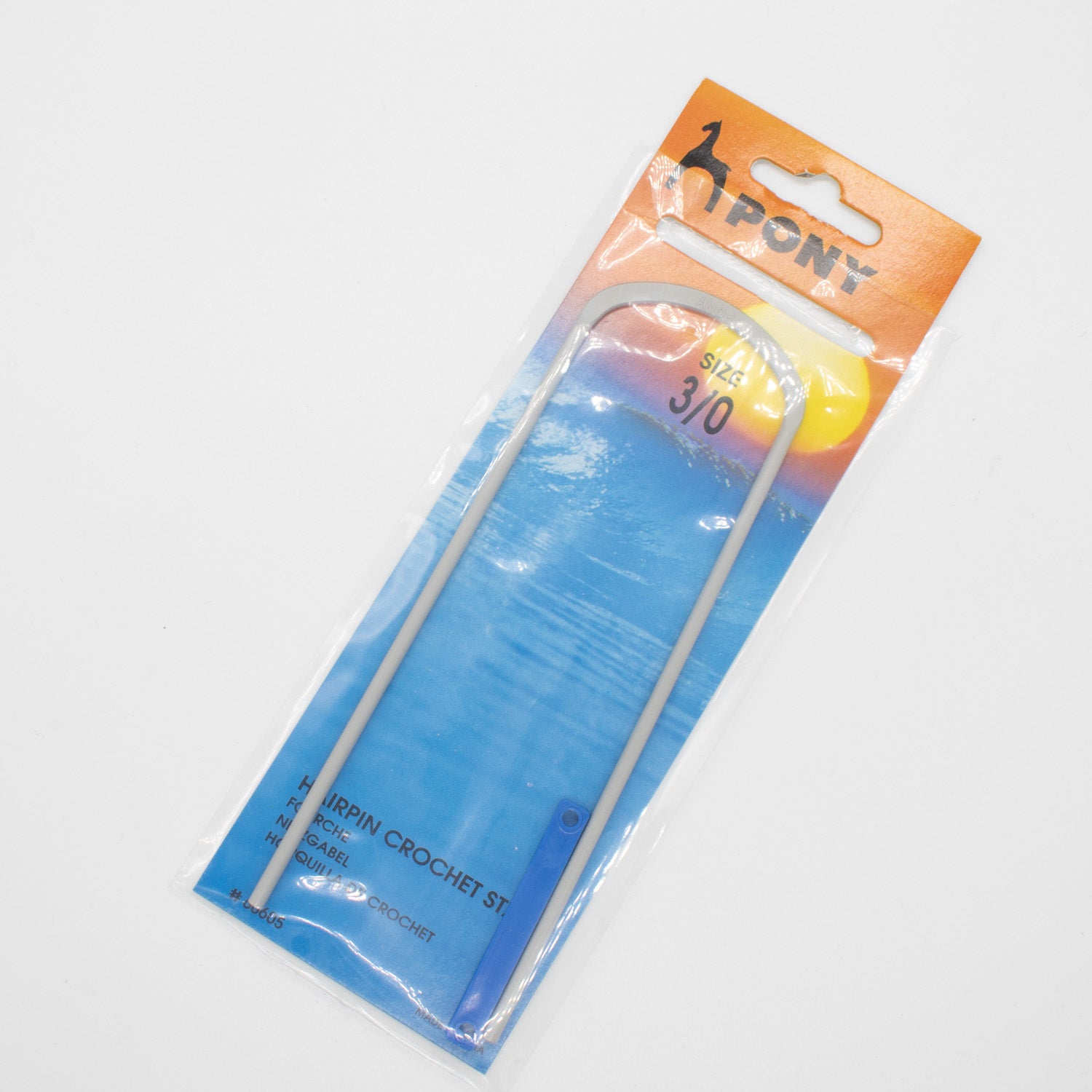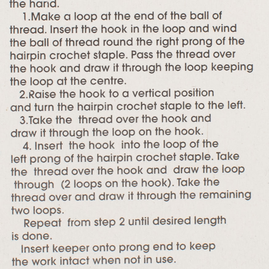 A Hairpin Crochet staple is used to make a type of lace with the two-pronged fork and a crochet hook. Yarn is wound around the prongs of the hairpin to form a series of large loops held together by a row of crochet stitches worked into the center. The strips made are joined with the help of a crochet hook to make shawls and bed covers. The plastic keeper helps prevent the work from sliding off the prongs.