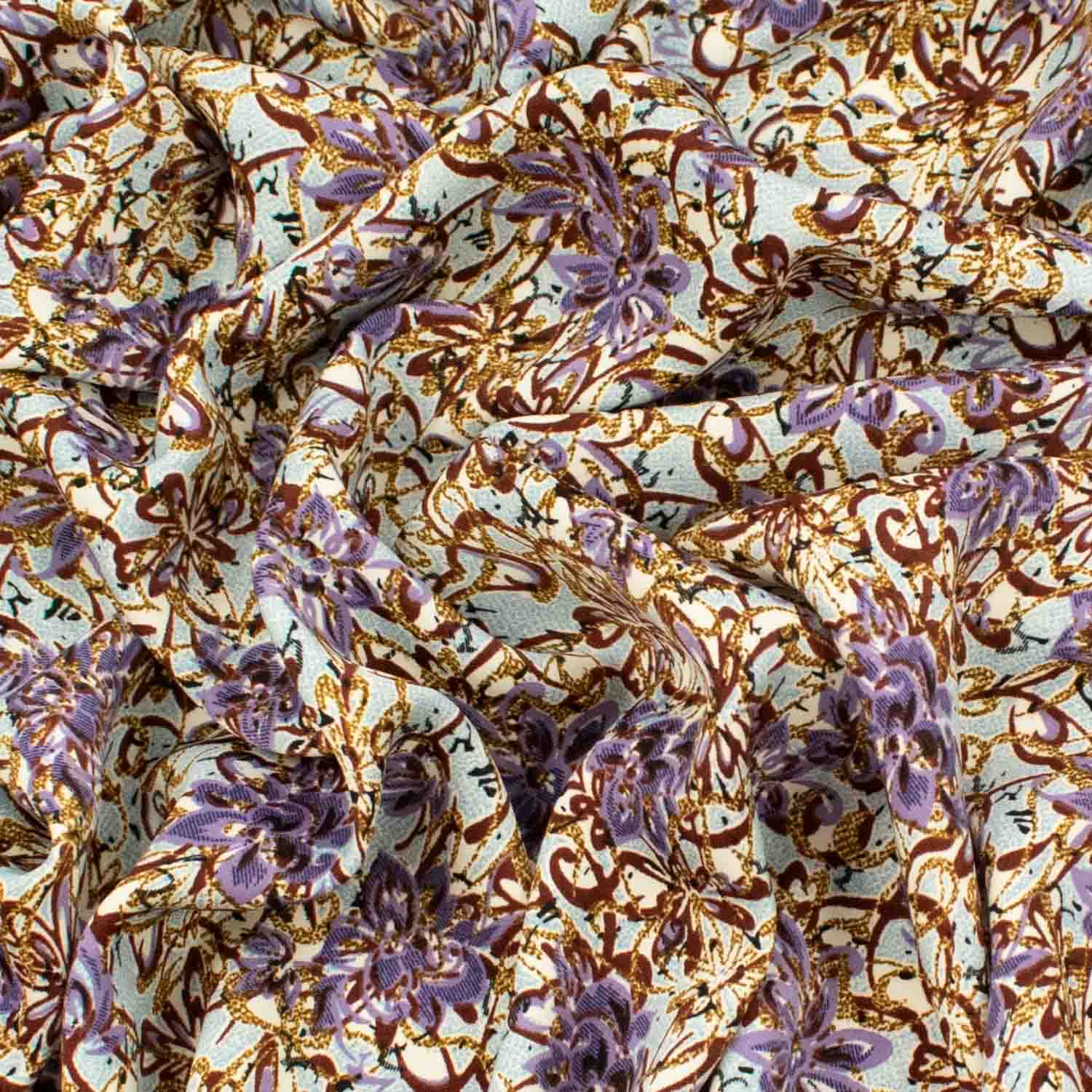 A 150cm wide polyester fabric with a smooth suede like texture (like a peach-hence the name). A select range of digital prints that drape softly making it useable for dresses, skirts, jackets, loose shirts and blouses. Printed Peach skin washes well and requires minimal ironing making it the ideal choice for travel/holiday wear.