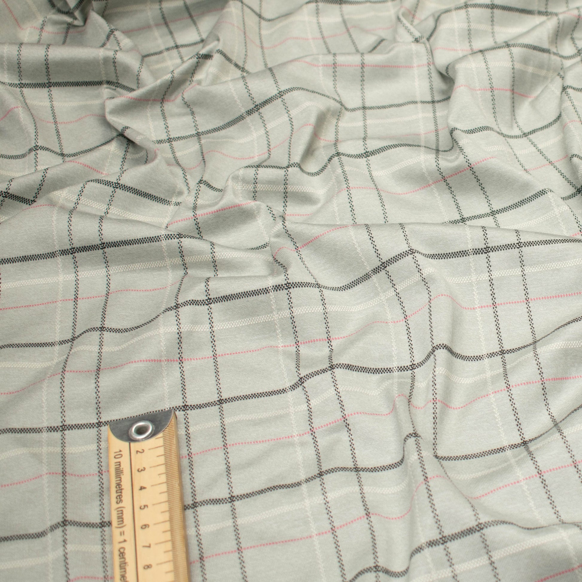 Printed Knits Design-8 Black & Pink Checks on Grey