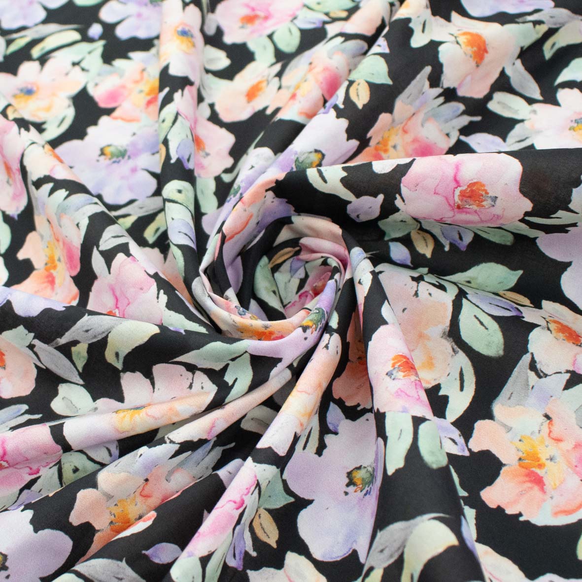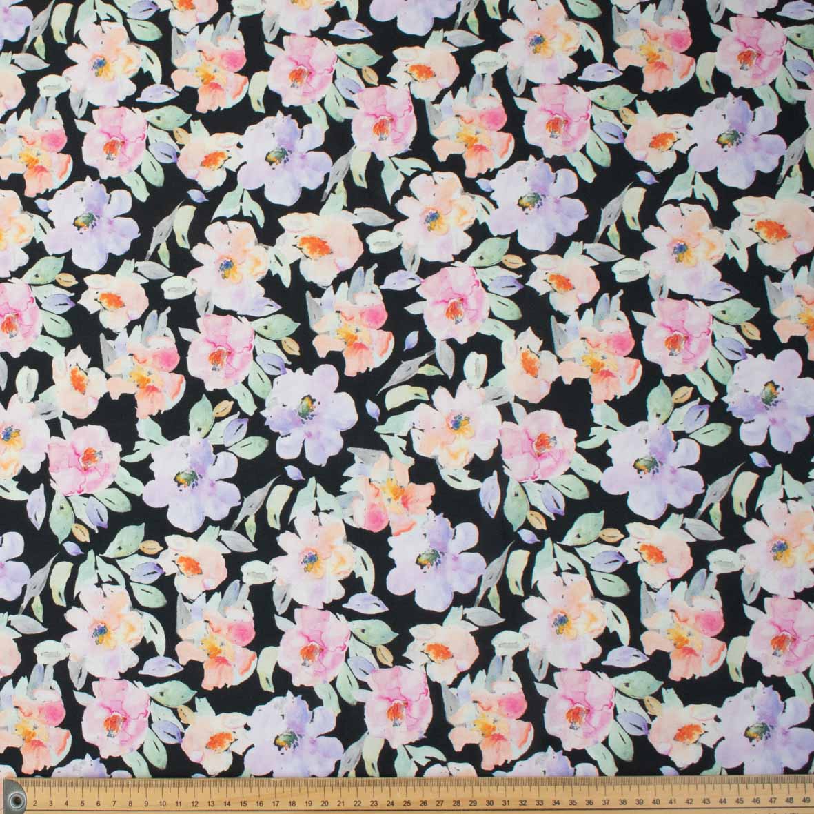 Pure Cotton Lawn Watercolour Prints SS-41836 - Floral Bloom on Black