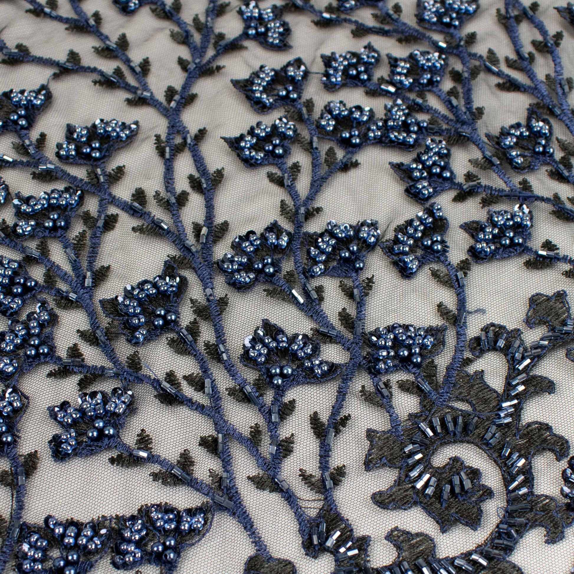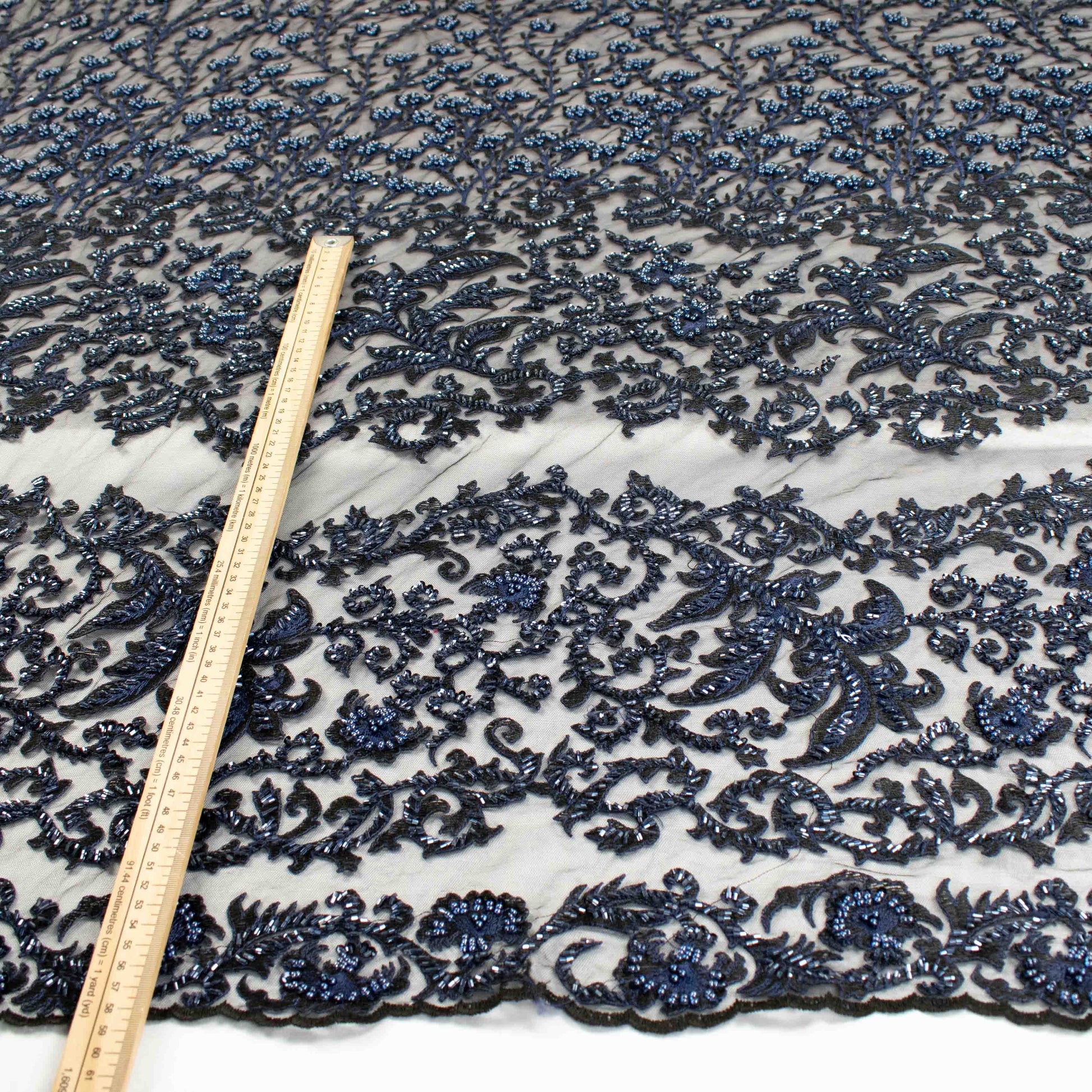 Seed Pearl Sequin Chantilly Lace Navy 130CM Wide