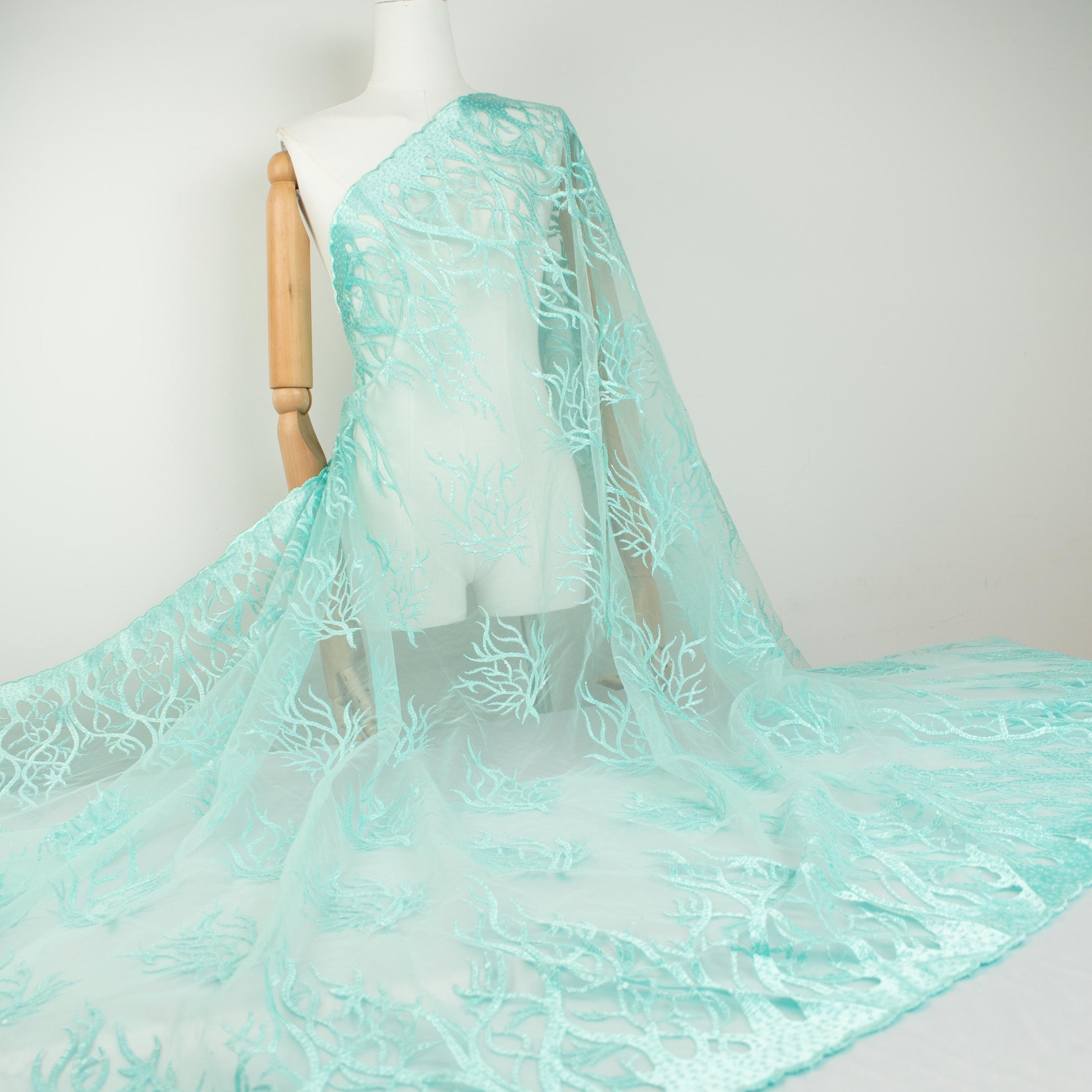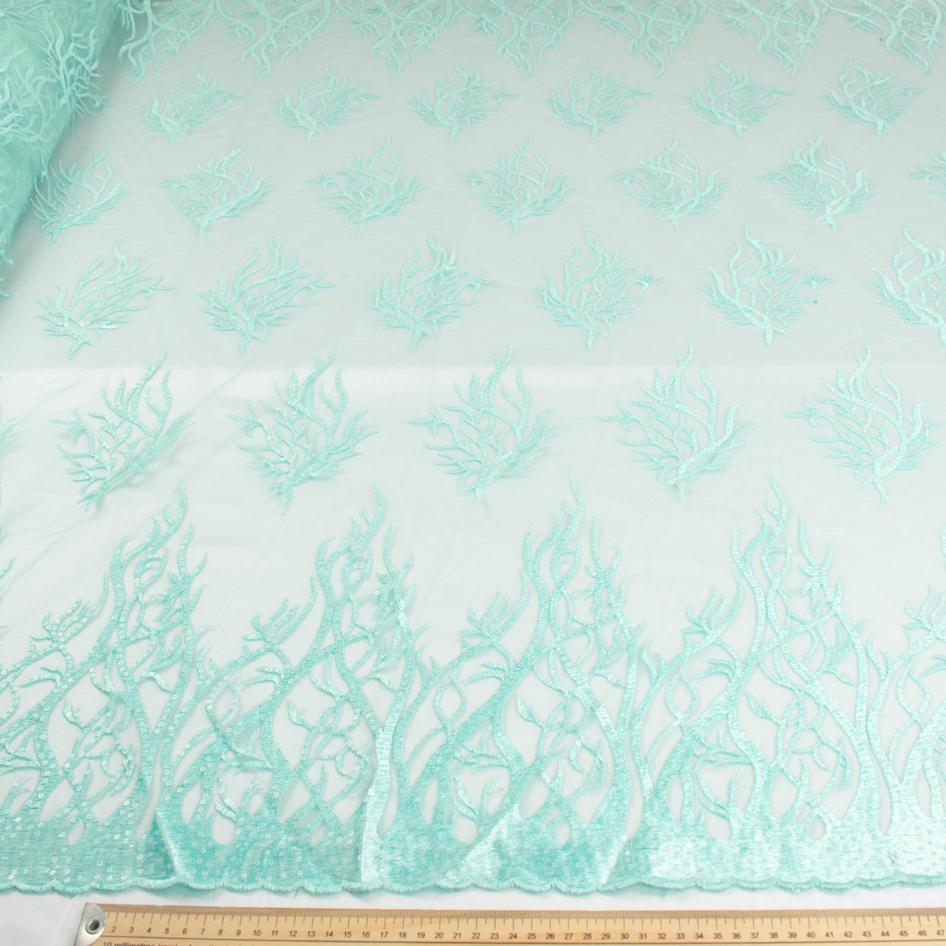 Sequin Coral Embroidered Lace Mint 130CM Wide