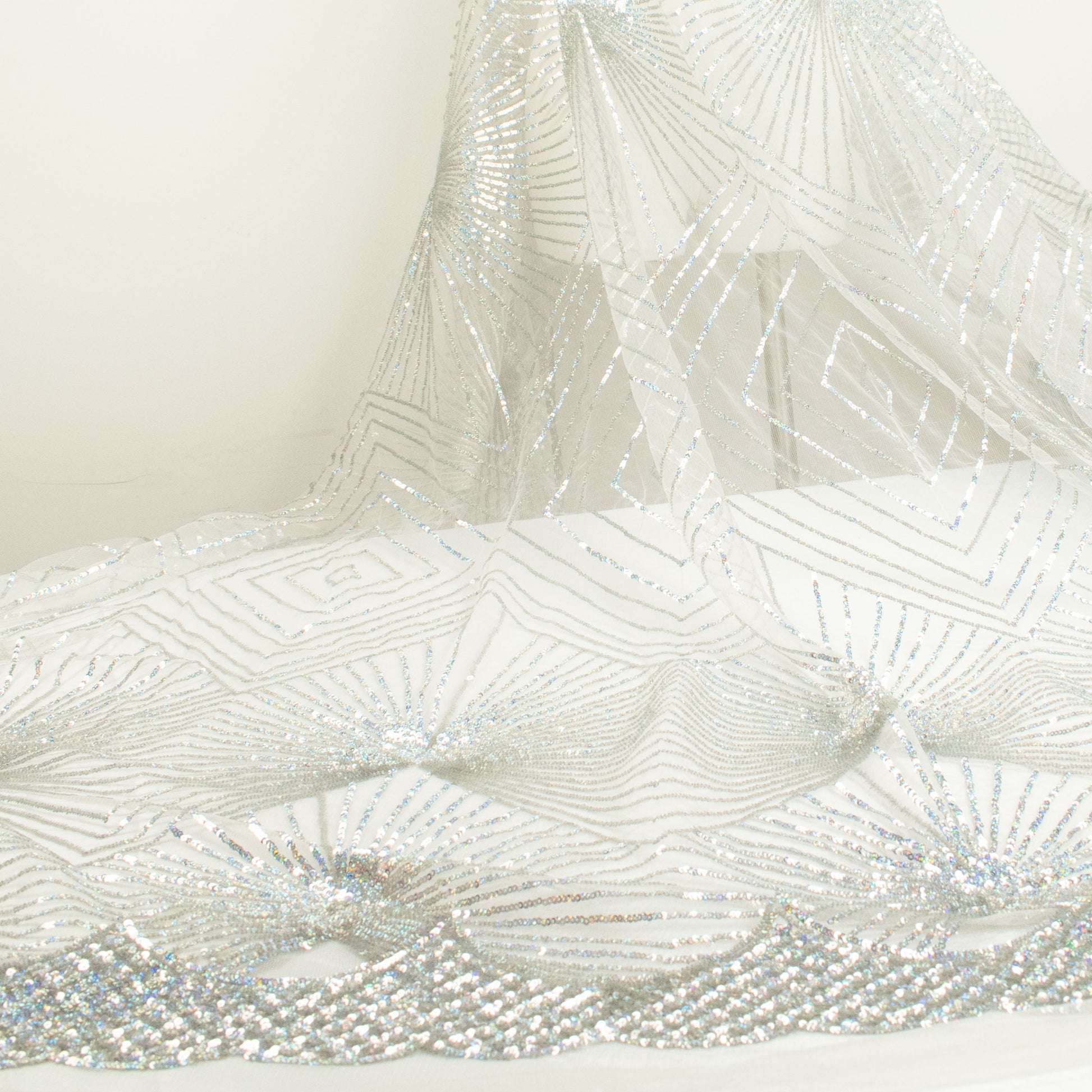 A beautiful collection of sequins mesh lace which includes heavily sequinned geometric patterns to sparsely sequinned embroidered lace designs.