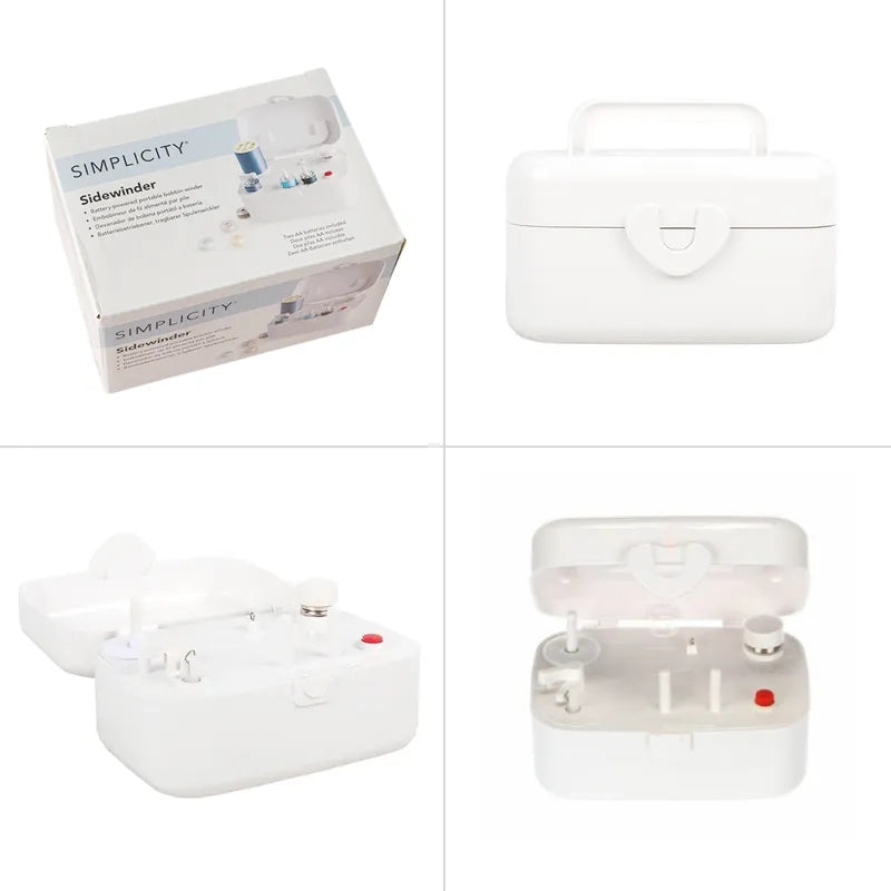 Introducing the Simplicity Portable Sidewinder, your ultimate solution for effortless bobbin winding on the go! No more wasting precious sewing time on your machine—now you can wind bobbins simply and quickly wherever inspiration strikes. With the push of a button, watch as the Sidewinder automatically fills your bobbin to perfection. No need to unthread your sewing machine anymore! This innovative gadget stops when your bobbin is full, or you can halt it at any time with a simple press of the button. It even comes with 2 x AA batteries, ready to power your creativity.