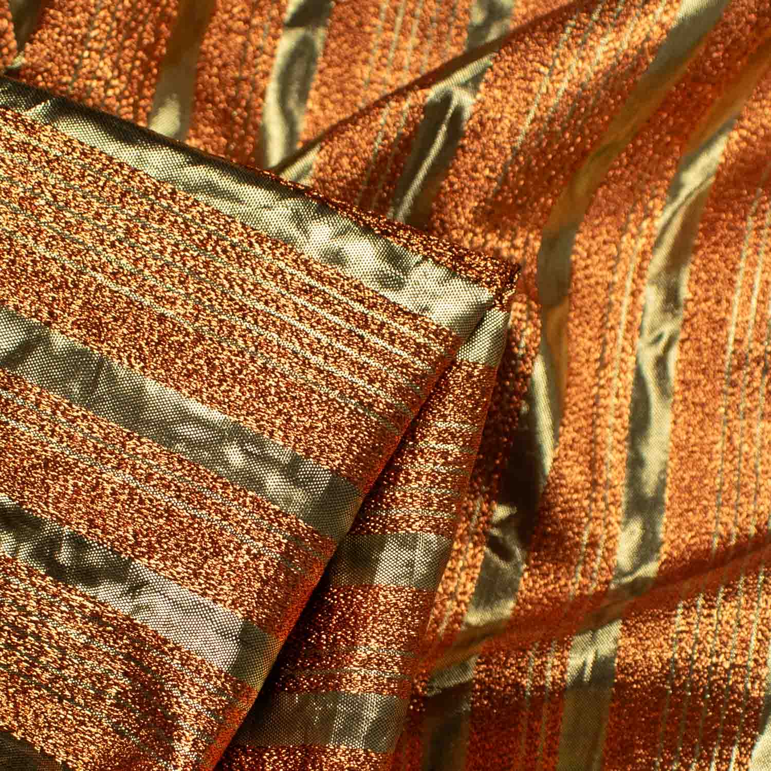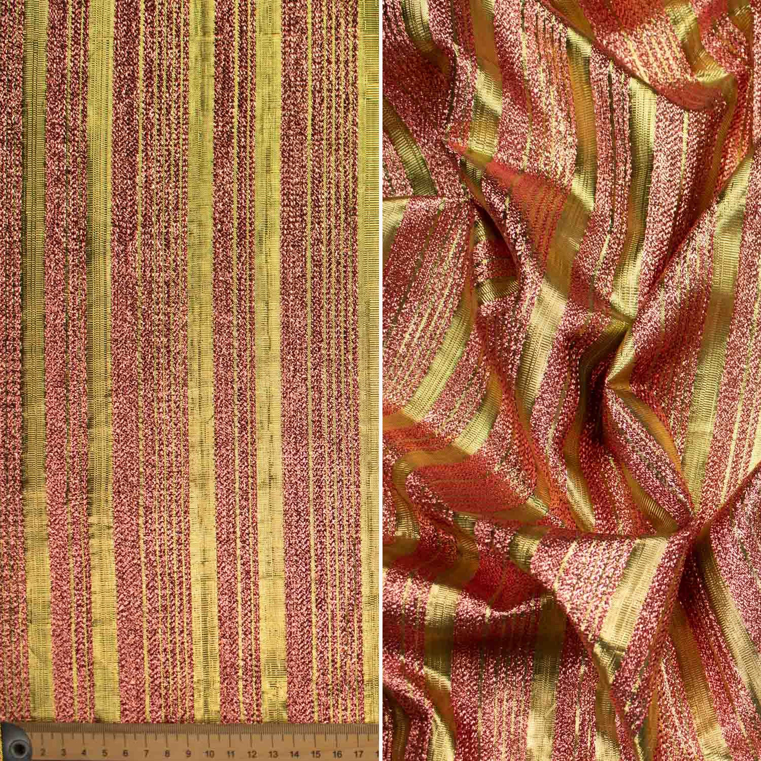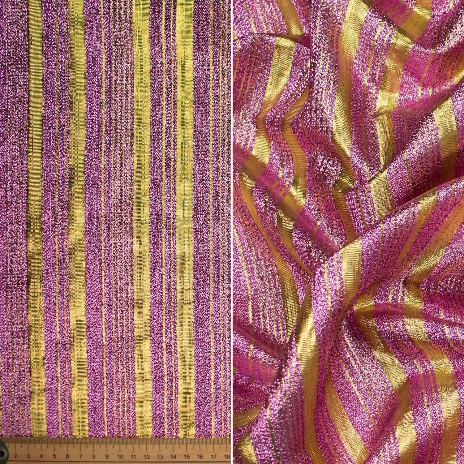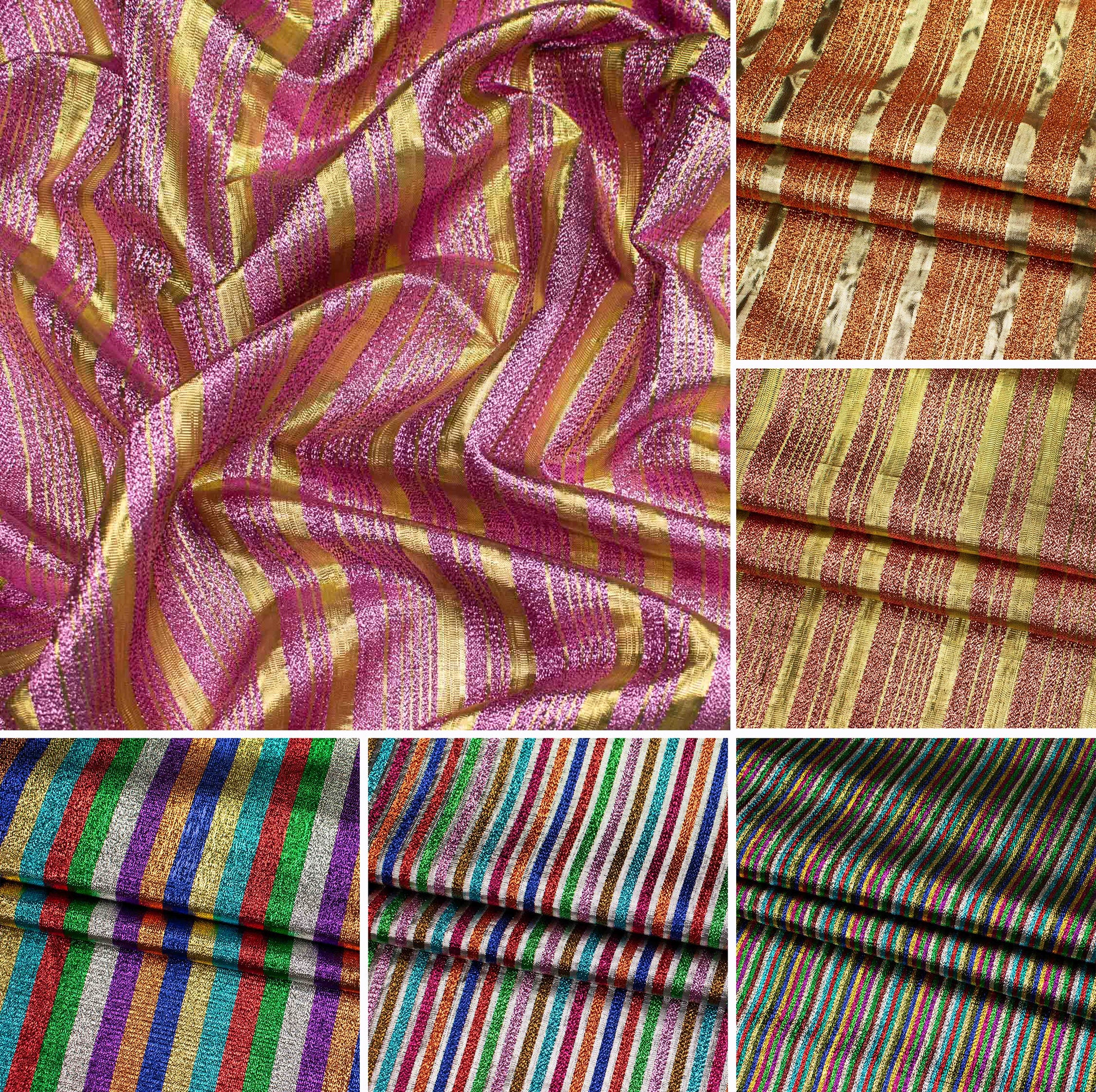 Our Plain 112cm wide stripe lame is 100% Polyester and is a lightweight fabric with a metallic sheen finish. Its uses include evening wear, party wear, stage and theatrical wear.