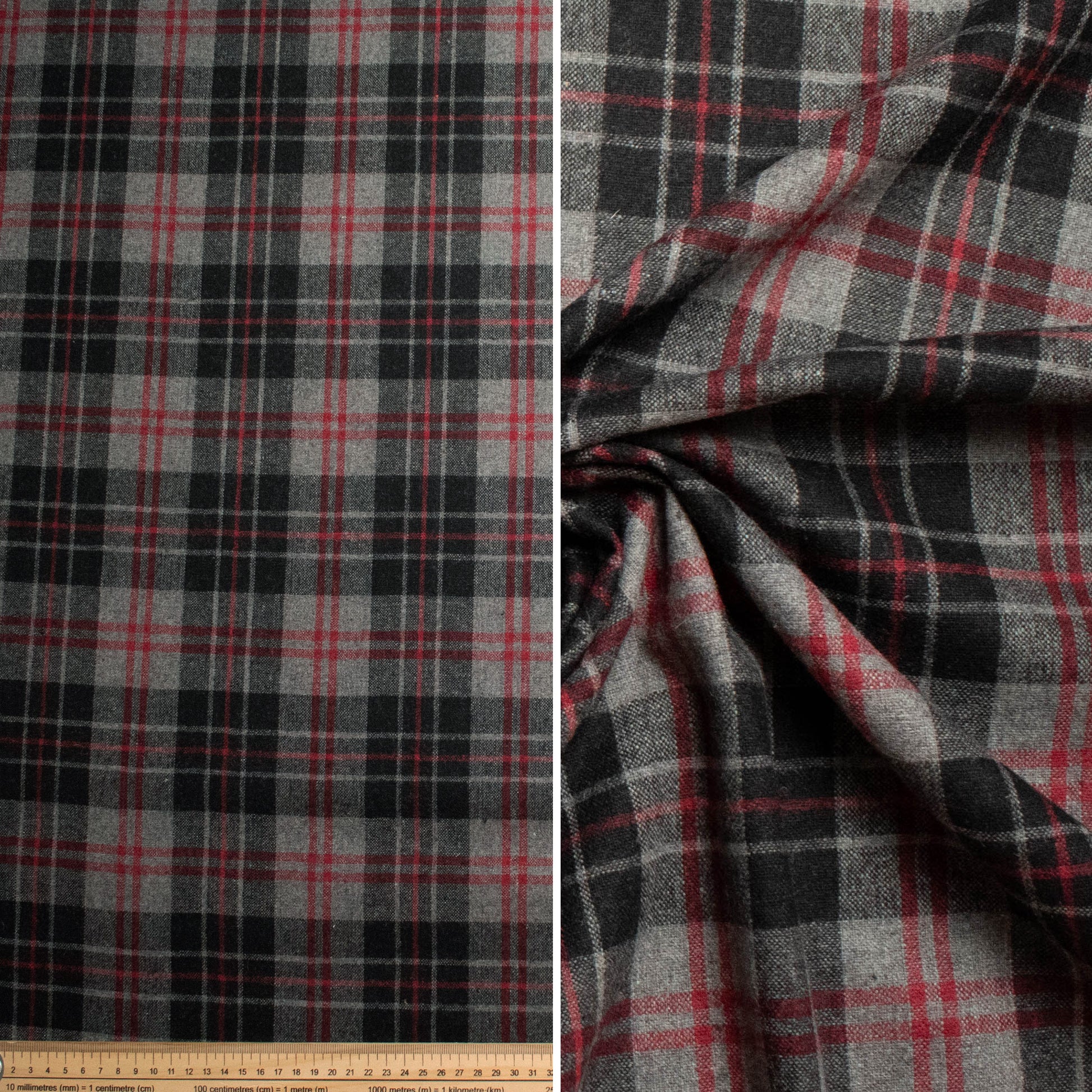 Wool, mixed with other fiber, Wool Melton are 30% wool and 70% poly. Checks are a classic group of patterns and great for making cosy and comfortable warm wear. Ideal for coats, jackets, capes, skirts.