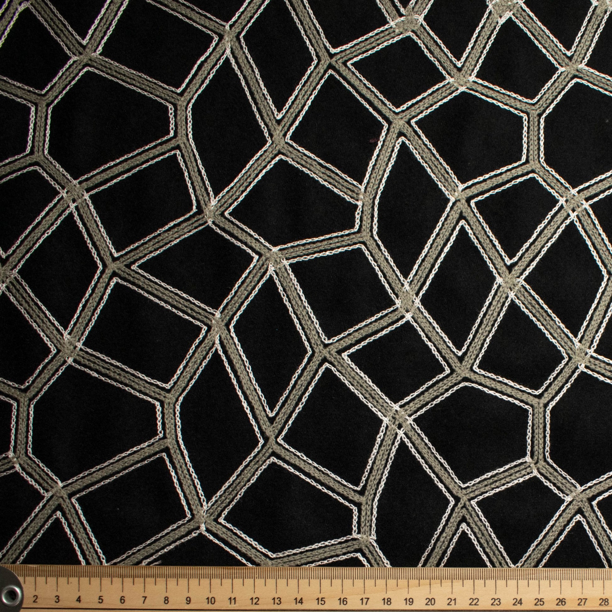 Wool melton suiting fabric with embroidery. Ideal for coats, jackets, capes, skirts.
