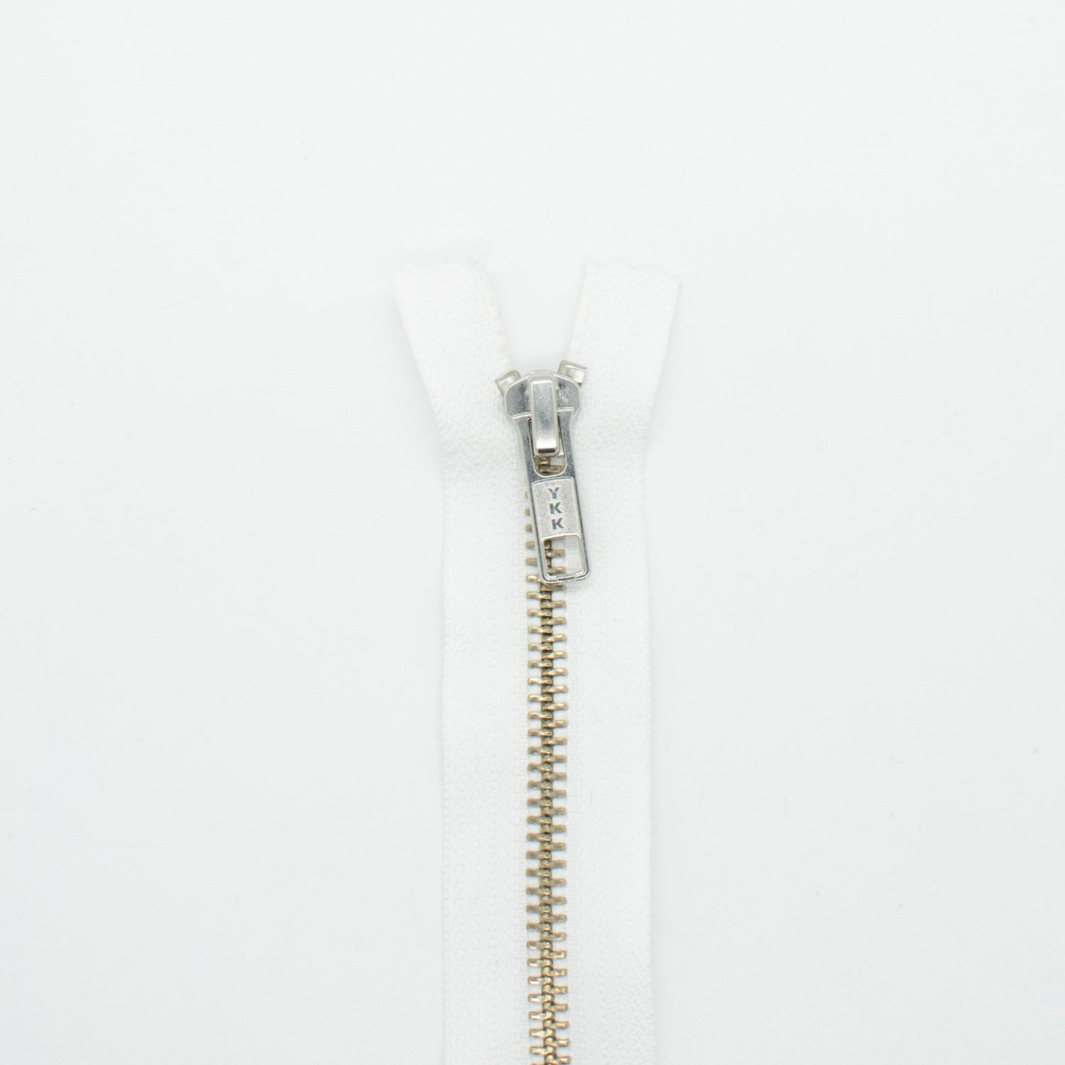 YKK Close-Ended Zip with Metal Teeth. YKK zips are renowned for being durable, strong and reliable, making them ideal for heavier fabrics like leather, denim, and suede and suiting.